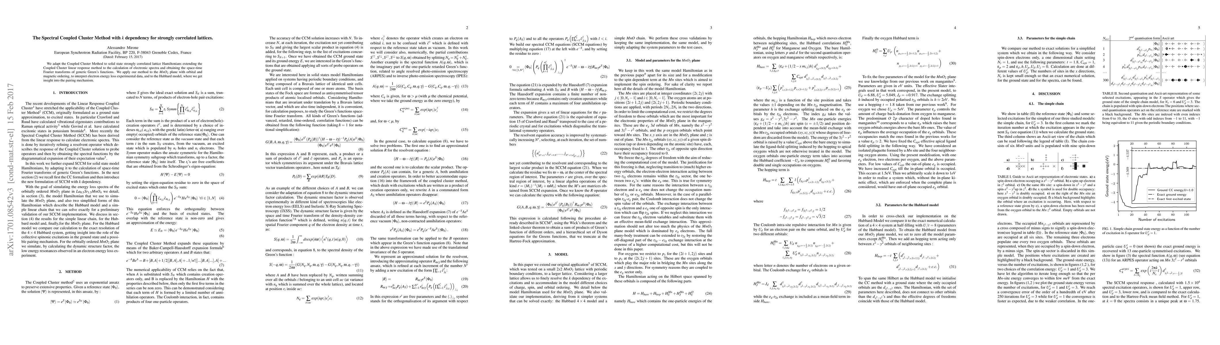 This paper adapts the Coupled Cluster Method for strongly correlated lattice Hamiltonians, extending it to calculate electronic spectra and analyze Green's functions. The method is applied to $MnO_2$ and the Hubbard model to interpret experimental data and explore pairing mechanisms.