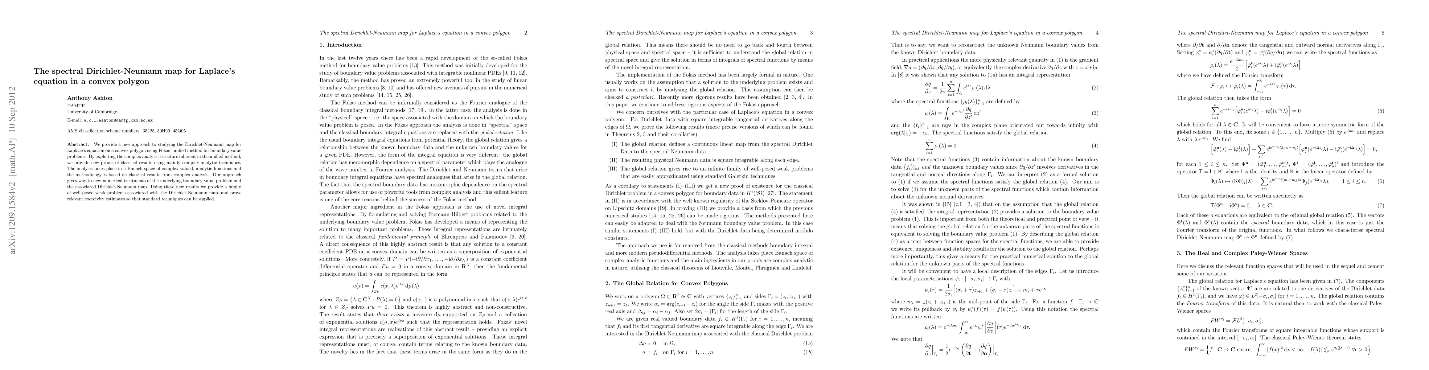 This paper presents a novel approach using Fokas' unified method to study the Dirichlet-Neumann map for Laplace's equation in convex polygons, leveraging complex analytic techniques. It introduces new numerical treatments and proves relevant coercivity estimates for associated weak problems.