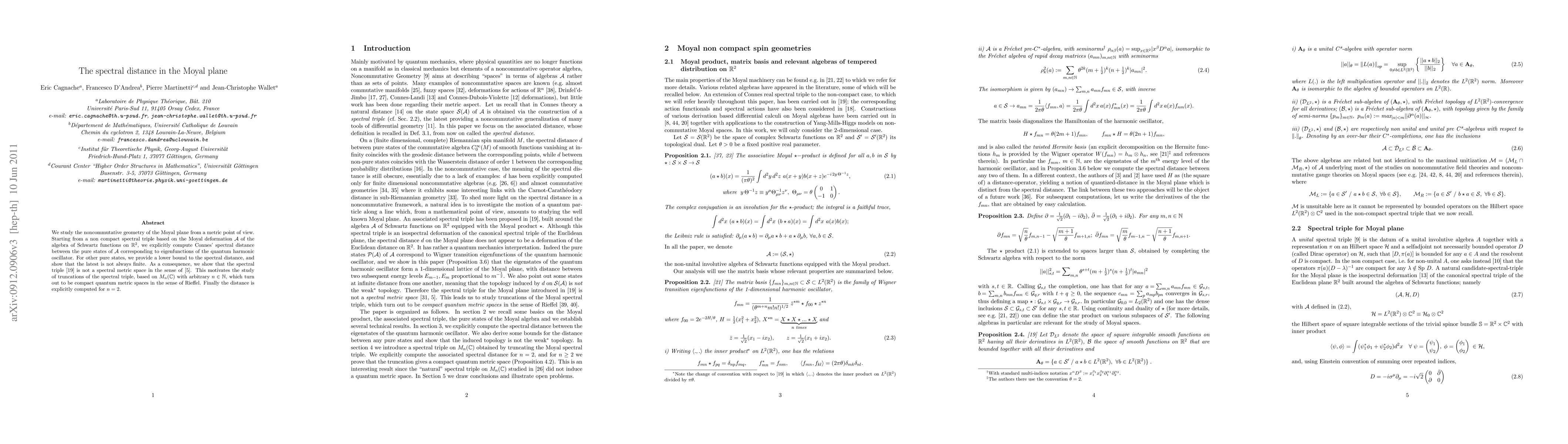 This paper investigates the noncommutative geometry of the Moyal plane using Connes' spectral distance, finding that the spectral triple is not a spectral metric space. It provides a lower bound for the spectral distance and computes it explicitly for certain states, revealing truncations of the spectral triple that form compact quantum metric spaces.