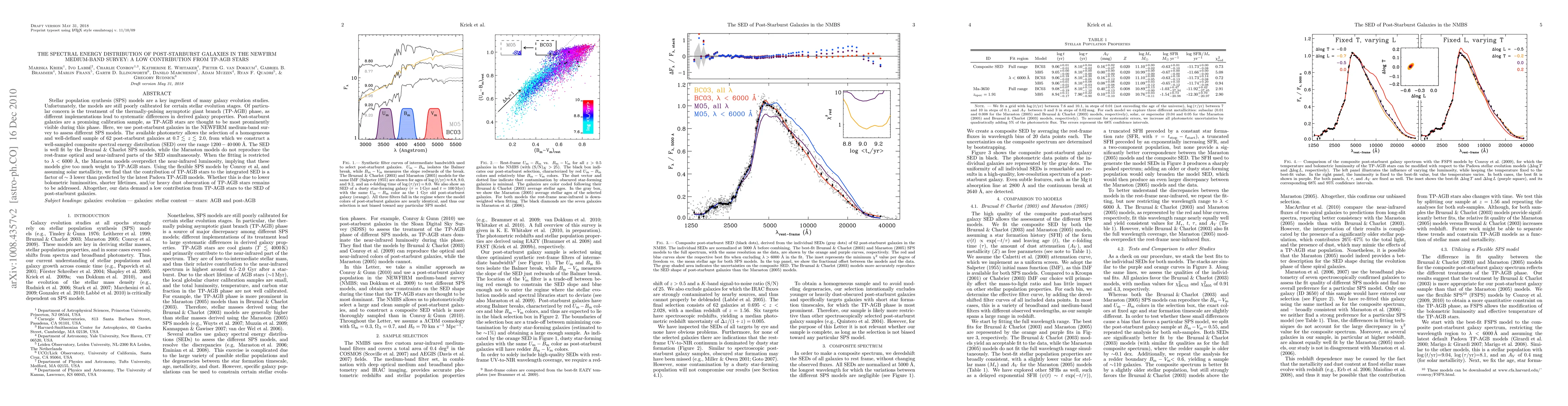 This study investigates the spectral energy distribution (SED) of post-starburst galaxies using the NEWFIRM medium-band survey, finding that current stellar population synthesis models overestimate the contribution of thermally-pulsing asymptotic giant branch (TP-AGB) stars. The analysis suggests a significantly lower TP-AGB star contribution in these galaxies, indicating a need for better calibration of TP-AGB phases in SPS models.