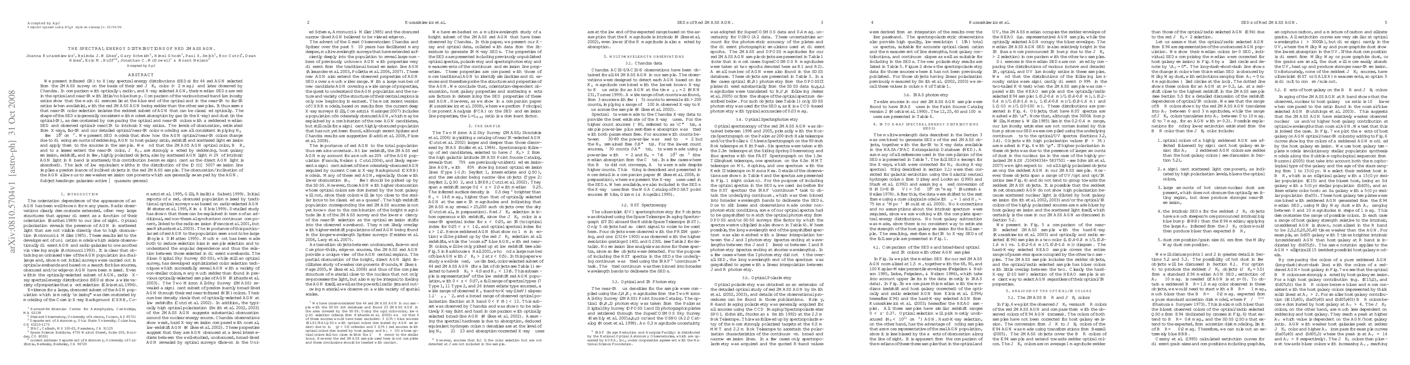 The study presents infrared (IR) to X-ray spectral energy distributions (SEDs) for 44 red AGN selected from the 2MASS survey, focusing on their red J-K_S color (>2 mag) and subsequent Chandra observations. The SEDs are compared with optically-, radio-, and X-ray selected AGN to understand their properties.