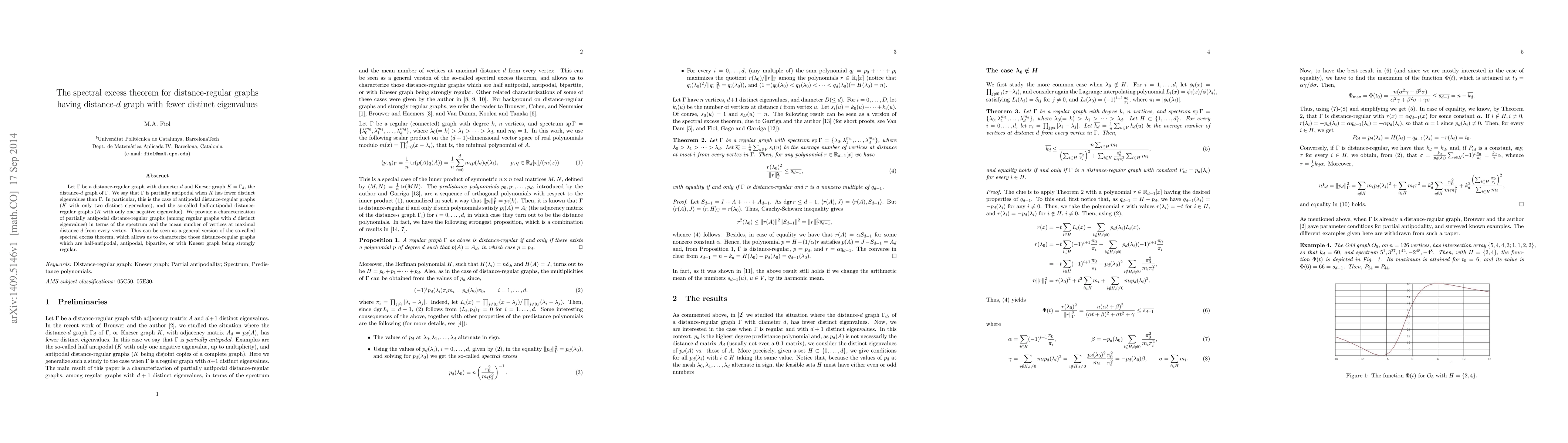 The paper characterizes partially antipodal distance-regular graphs through their spectral properties and the mean number of vertices at distance $d$, generalizing the spectral excess theorem. It identifies these graphs when their distance-$d$ subgraph has fewer distinct eigenvalues than the graph itself.