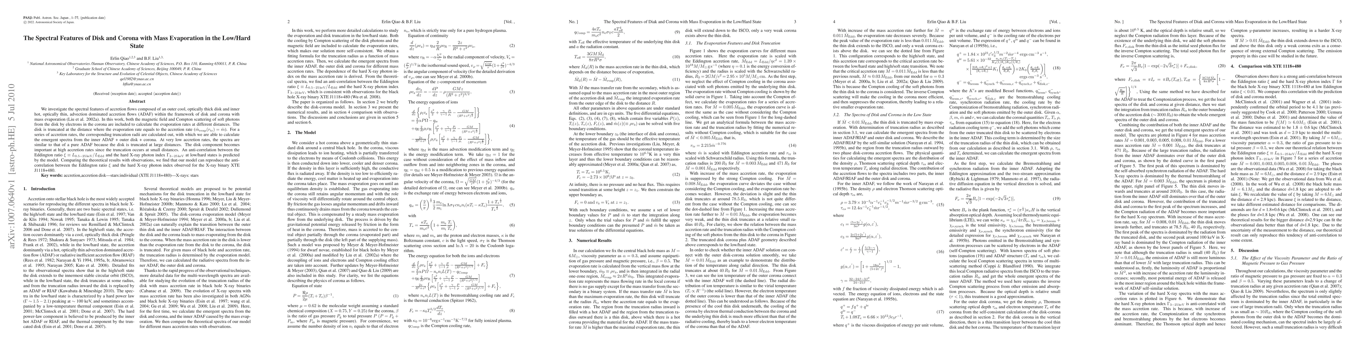 This research models spectral features of accretion flows with an outer cool disk and inner hot corona in low/hard X-ray states, incorporating magnetic fields and Compton scattering. It predicts an anti-correlation between Eddington ratio and hard X-ray photon index, successfully reproducing observations for XTE J1118+480.
