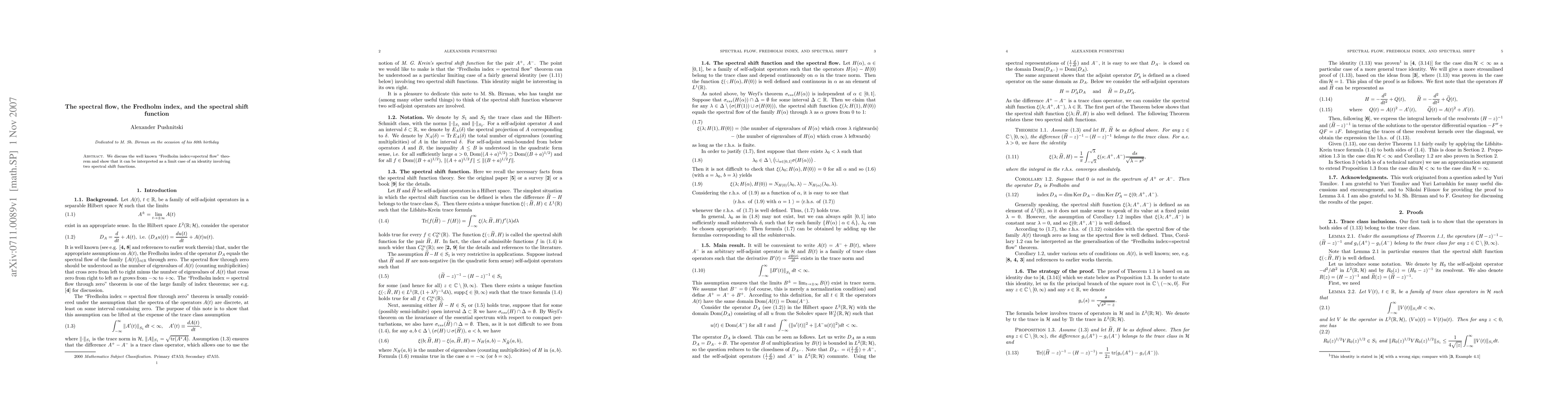 Summary: This paper explores the relationship between the Fredholm index and spectral flow, demonstrating that the well-known theorem can be viewed as a special case of a broader identity involving two spectral shift functions.