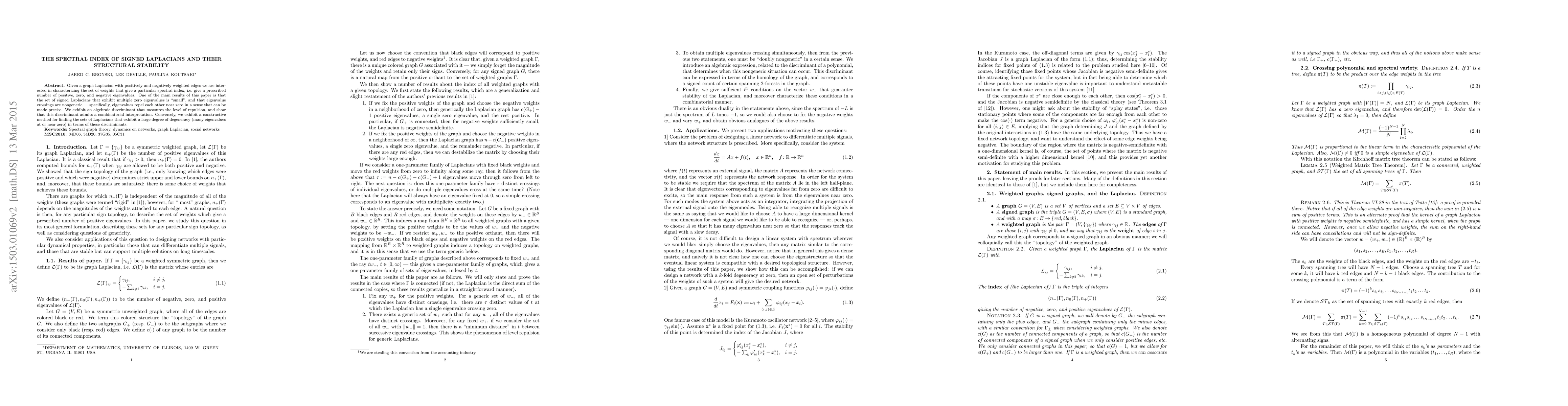 This paper studies the spectral index of signed Laplacians, finding that sets with multiple zero eigenvalues are rare and that eigenvalue crossings are non-generic, leading to a combinatorial interpretation of an algebraic discriminant.