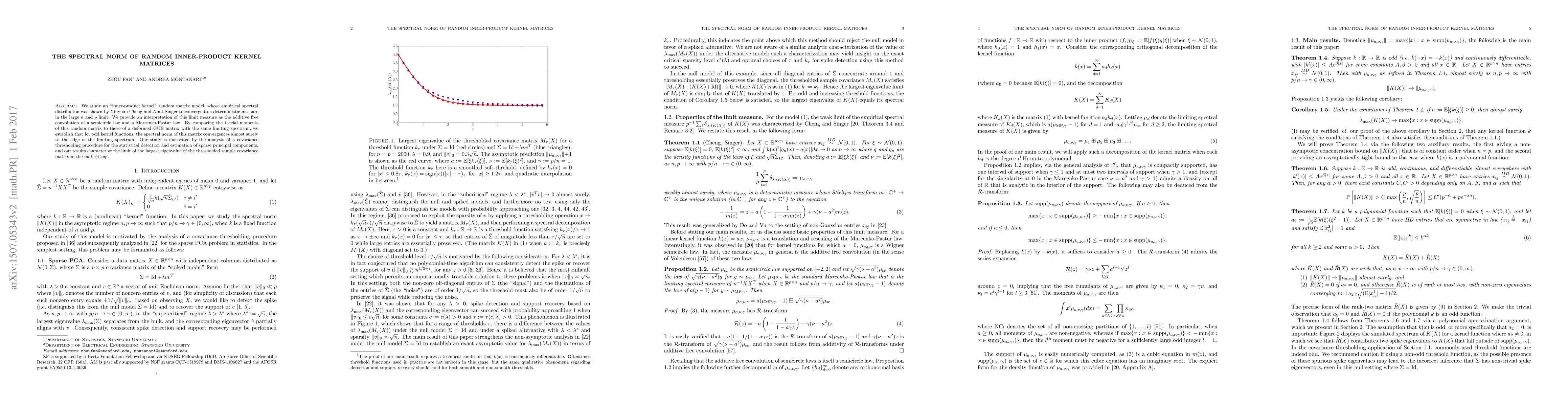 This paper investigates the spectral norm of random inner-product kernel matrices, showing that for odd kernel functions, it converges almost surely to the edge of the limiting spectrum. The study is motivated by applications in sparse principal component detection and estimation.