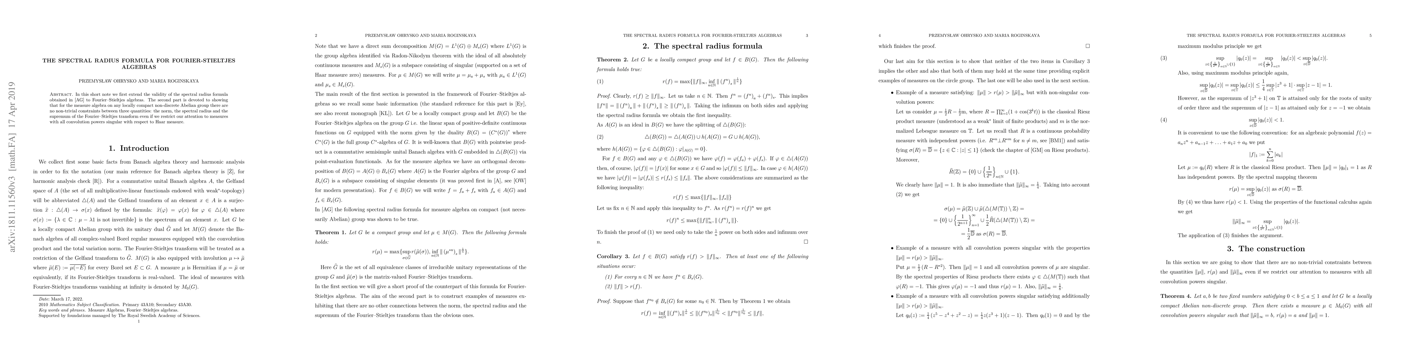 Summary: This paper extends the spectral radius formula to Fourier-Stieltjes algebras and demonstrates that for measure algebras on locally compact non-discrete Abelian groups, there are no constraints among the norm, spectral radius, and the supremum of the Fourier-Stieltjes transform, even for singular convolution powers.