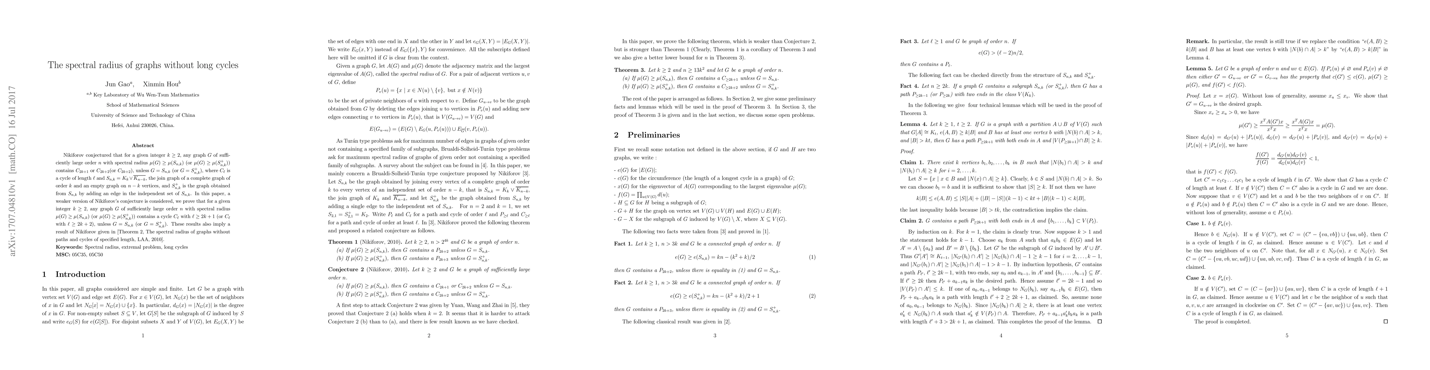 The work presents novel results on the relationship between spectral radius and cycle length in graphs, providing new insights into the structure and properties of extremal graphs.