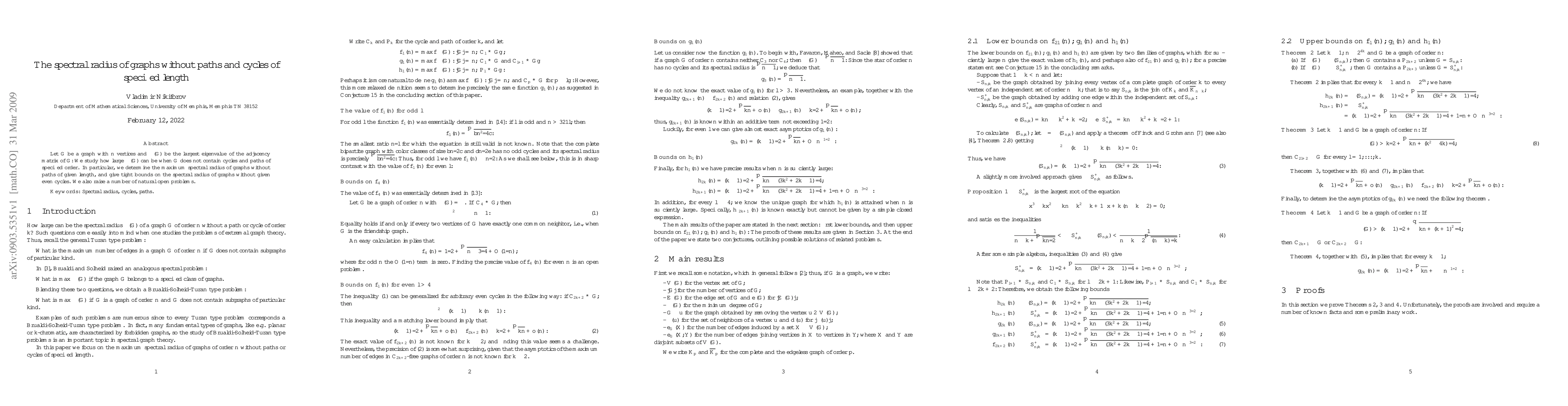 The paper presents novel upper bounds on the spectral radius of graphs without specified paths and cycles, along with conditions for the existence of certain subgraphs based on spectral properties.