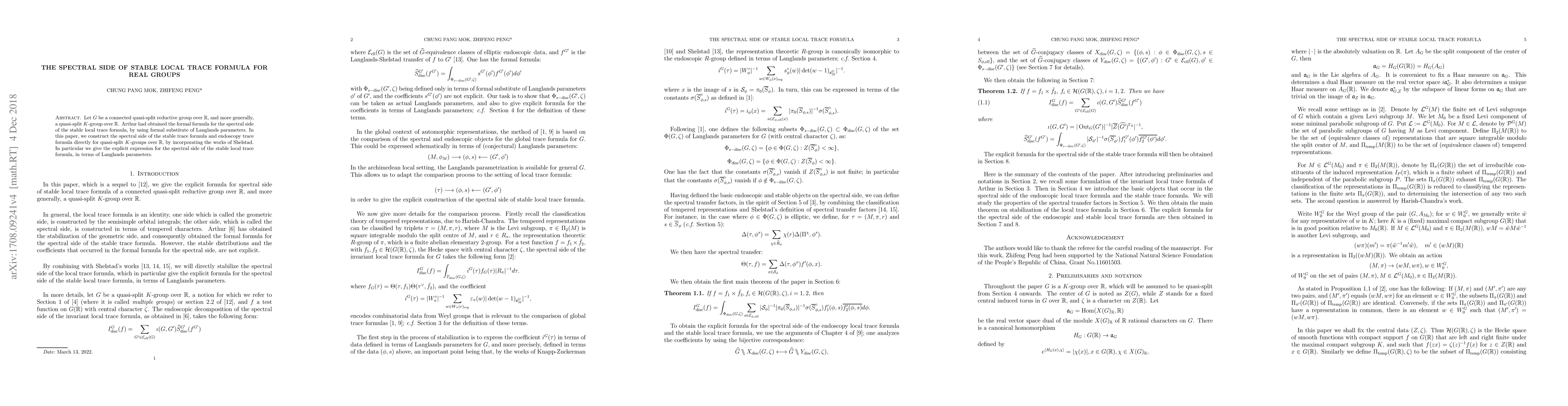 This paper constructs the spectral side of the stable local trace formula for quasi-split $K$-groups over $\mathbb{R}$, providing an explicit expression in terms of Langlands parameters, building on Arthur's initial work and incorporating Shelstad's methods.