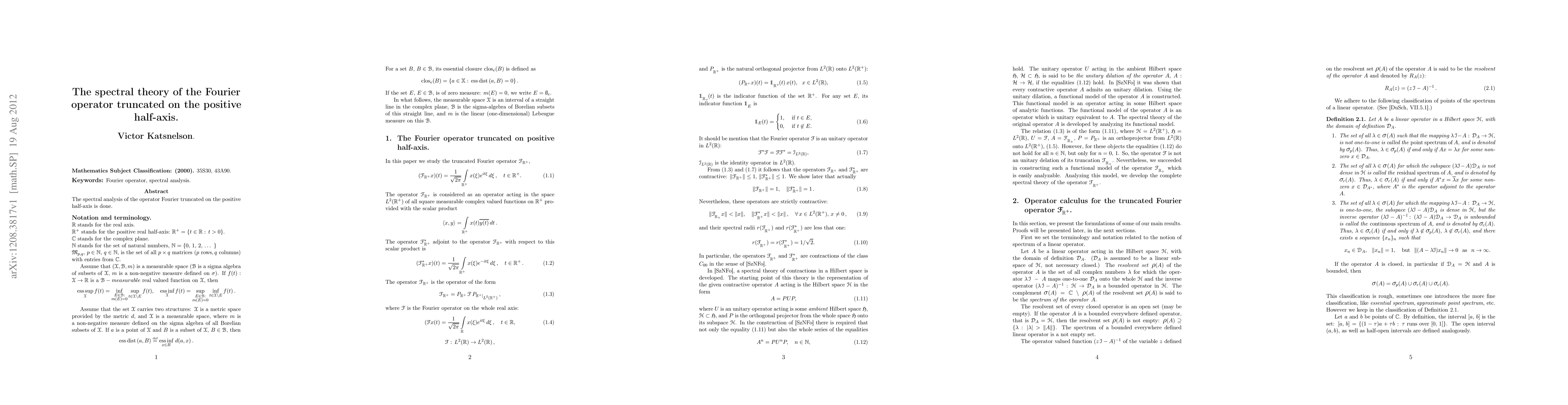 Summary: This paper investigates the spectral properties of the Fourier operator when restricted to the positive half-axis, providing a detailed analysis of its spectrum and associated eigenfunctions.