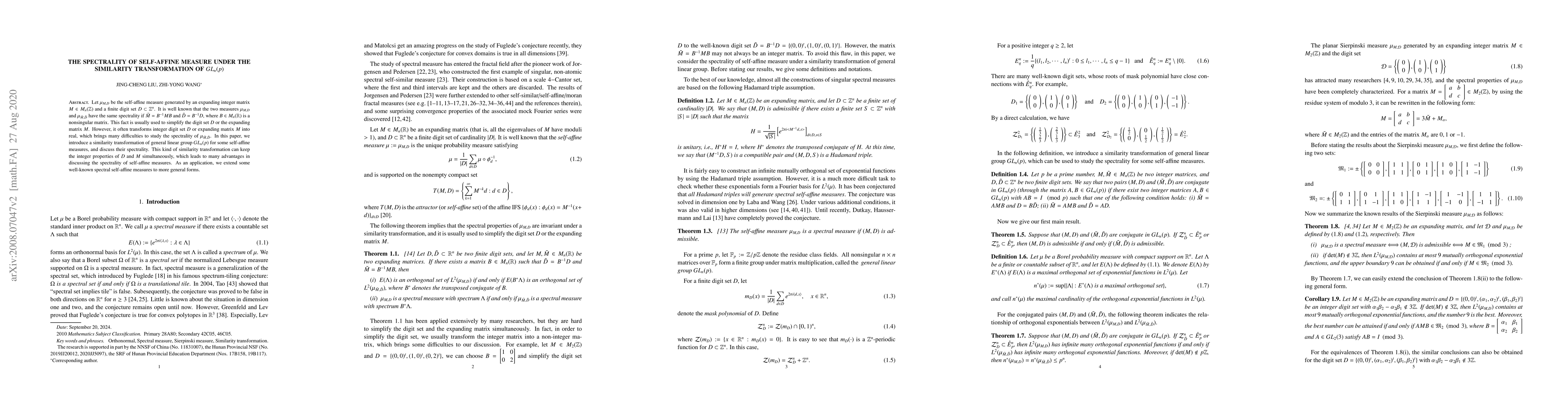 Let $\mu_{M,D}$ be the self-affine measure generated by an expanding integer matrix $M\in M_n(\mathbb{Z})$ and a finite digit set $D\subset\mathbb{Z}^n$. It is well known that the two measures $\mu_{M,D}$ and $\mu_{\tilde{M},\tilde{D}}$ have the same spectrality if $\tilde{M}=B^{-1}MB$ and $\tilde{D}=B^{-1}D$, where $B\in M_n(\mathbb{R})$ is a nonsingular matrix. This fact is usually used to simplify the digit set $D$ or the expanding matrix $M$. However, it often transforms integer digit set $D$ or expanding matrix $M$ into real, which brings many difficulties to study the spectrality of $\mu_{\tilde{M},\tilde{D}}$. In this paper, we introduce a similarity transformation of general linear group $GL_n(p)$ for some self-affine measures, and discuss their spectrality. This kind of similarity transformation can keep the integer properties of $D$ and $M$ simultaneously, which leads to many advantages in discussing the spectrality of self-affine measures. As an application, we extend some well-known spectral self-affine measures to more general forms.