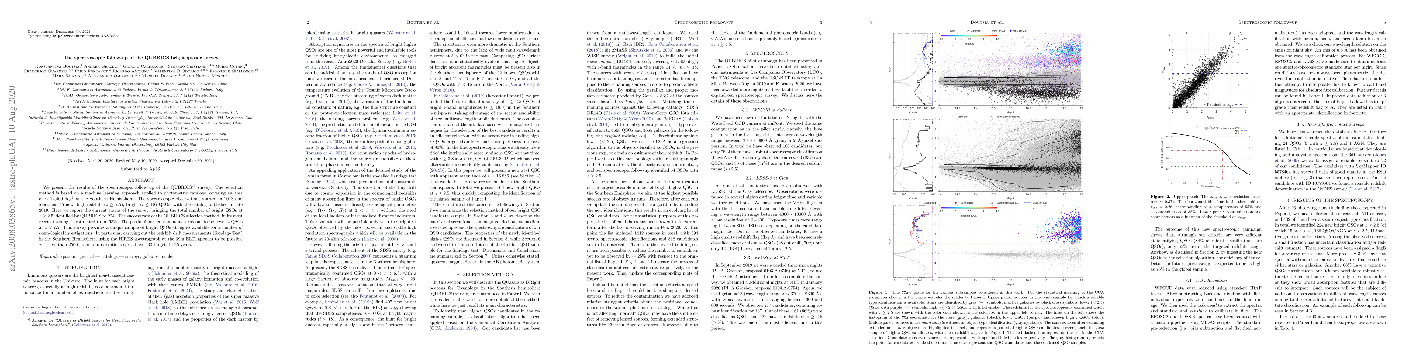We present the results of the spectroscopic follow up of the QUBRICS survey. The selection method is based on a machine learning approach applied to photometric catalogs, covering an area of $\sim$ 12,400 deg$^2$ in the Southern Hemisphere. The spectroscopic observations started in 2018 and identified 55 new, high-redshift (z>=2.5), bright (i<=18) QSOs, with the catalog published in late 2019. Here we report the current status of the survey, bringing the total number of bright QSOs at z<=2.5 identified by QUBRICS to 224. The success rate of the QUBRICS selection method, in its most recent training, is estimated to be 68%. The predominant contaminant turns out to be lower-z QSOs at z<2.5. This survey provides a unique sample of bright QSOs at high-z available for a number of cosmological investigations. In particular, carrying out the redshift drift measurements (Sandage Test) in the Southern Hemisphere, using the HIRES spectrograph at the 39m ELT, appears to be possible with less than 2500 hours of observations spread over 30 targets in 25 years.