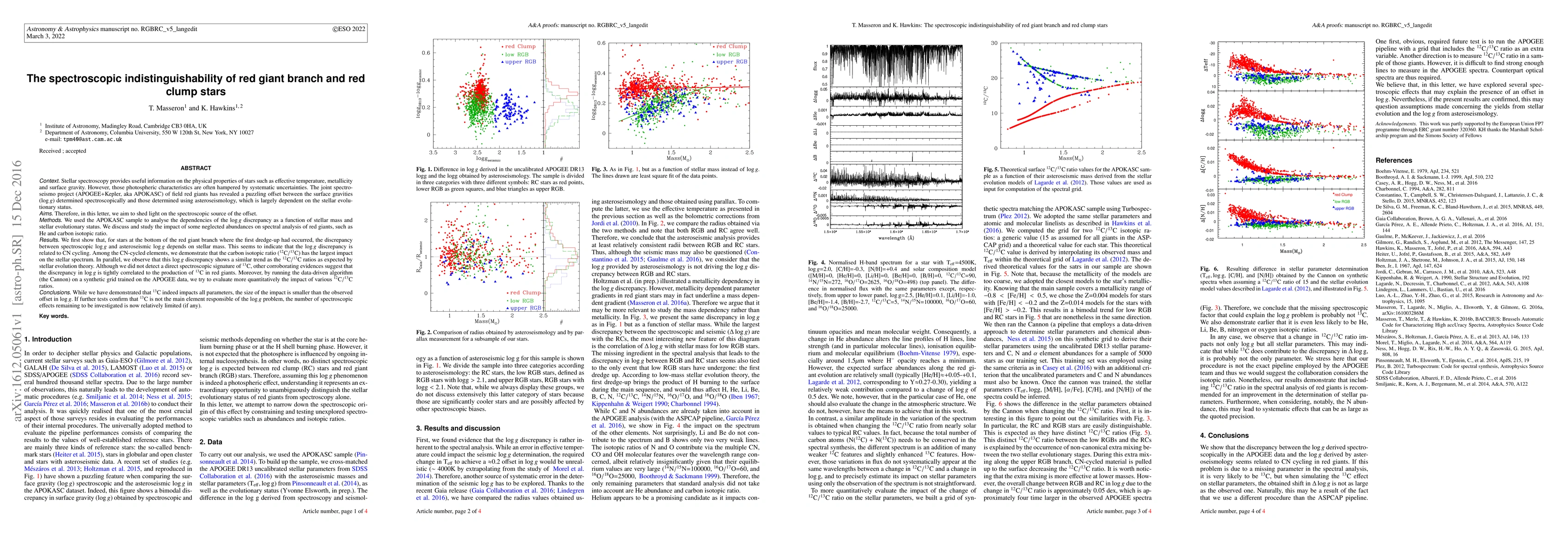 This paper investigates the spectroscopic indistinguishability between red giant branch and red clump stars, focusing on the log g discrepancy between spectroscopic and asteroseismic measurements. It finds that the discrepancy correlates with stellar mass and is likely influenced by carbon isotopic ratios, particularly the $\rm ^{12}C/^{13}C$ ratio, though $\rm ^{13}C$ does not directly account for the observed offset.