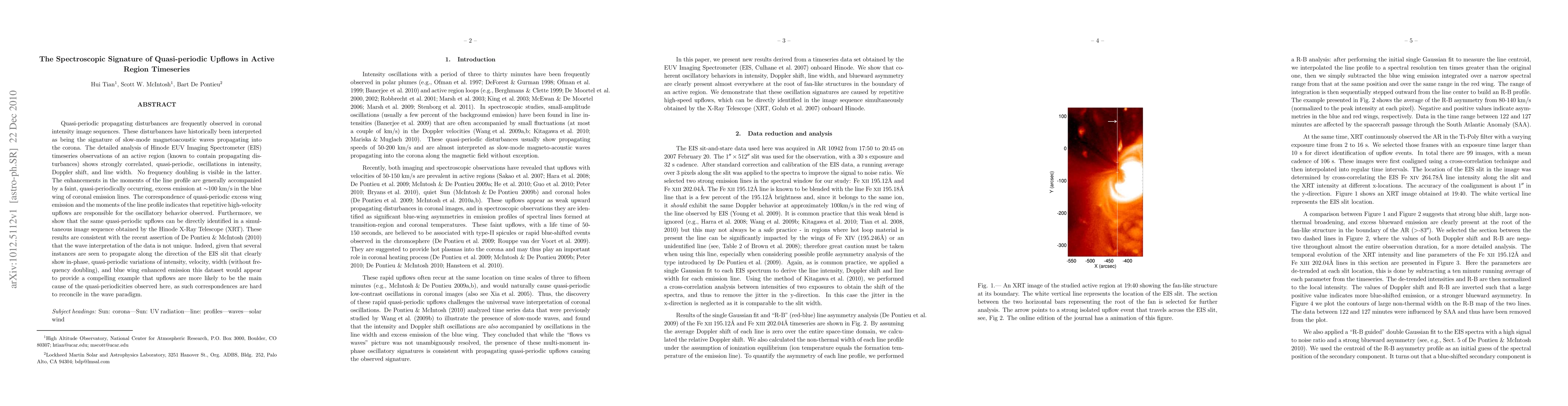 Quasi-periodic propagating disturbances are frequently observed in coronal intensity image sequences. These disturbances have historically been interpreted as being the signature of slow-mode magnetoacoustic waves propagating into the corona. The detailed analysis of Hinode EUV Imaging Spectrometer (EIS) timeseries observations of an active region (known to contain propagating disturbances) shows strongly correlated, quasi-periodic, oscillations in intensity, Doppler shift, and line width. No frequency doubling is visible in the latter. The enhancements in the moments of the line profile are generally accompanied by a faint, quasi-periodically occurring, excess emission at ~100 km/s in the blue wing of coronal emission lines. The correspondence of quasi-periodic excess wing emission and the moments of the line profile indicates that repetitive high-velocity upflows are responsible for the oscillatory behavior observed. Furthermore, we show that the same quasi-periodic upflows can be directly identified in a simultaneous image sequence obtained by the Hinode X-Ray Telescope (XRT). These results are consistent with the recent assertion of De Pontieu & McIntosh (2010) that the wave interpretation of the data is not unique. Indeed, given that several instances are seen to propagate along the direction of the EIS slit that clearly show in-phase, quasi-periodic variations of intensity, velocity, width (without frequency doubling), and blue wing enhanced emission this dataset would appear to provide a compelling example that upflows are more likely to be the main cause of the quasi-periodicities observed here, as such correspondences are hard to reconcile in the wave paradigm.