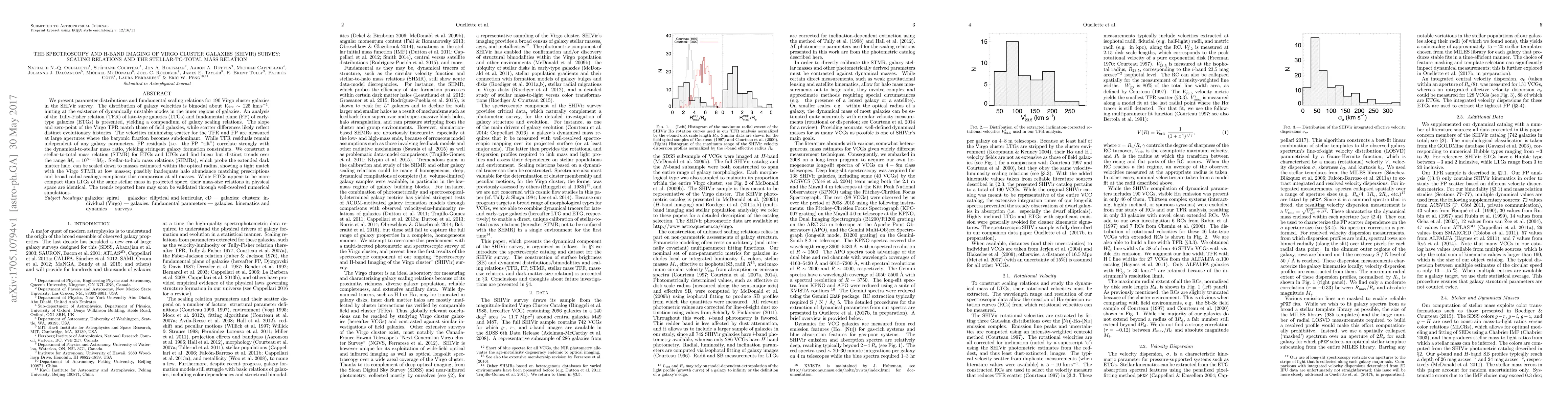 This paper presents scaling relations and the stellar-to-total mass relation for 190 galaxies in the Virgo cluster from the SHIVir survey, revealing bimodal galaxy velocity distributions and distinct scaling relations for early-type and late-type galaxies. The findings suggest that the Tully-Fisher relation and fundamental plane correlate strongly with galaxy formation processes and mass distributions.