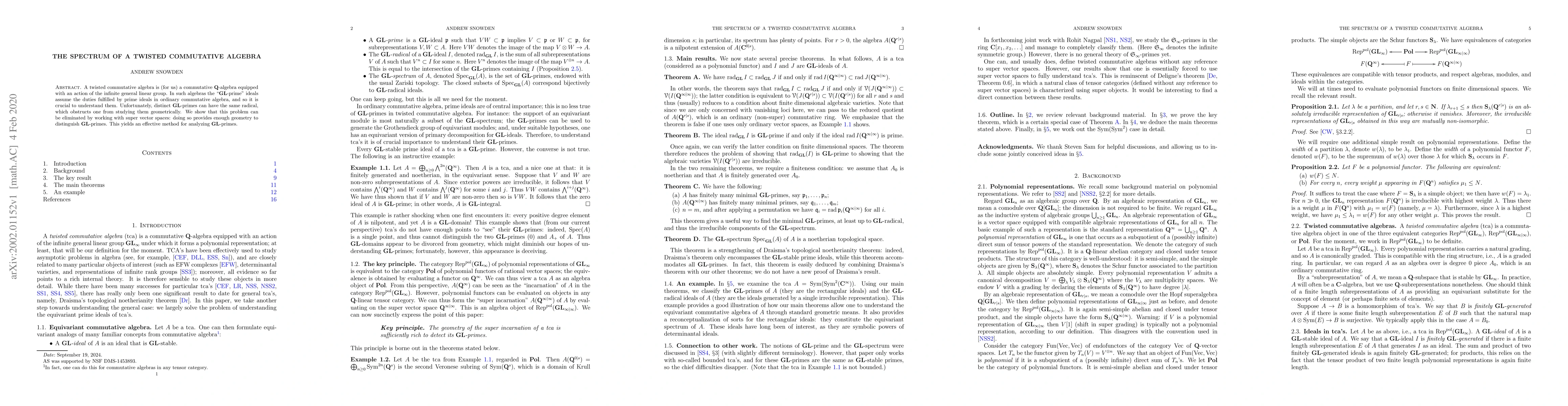This paper explores twisted commutative algebras with an infinite general linear group action, focusing on the "$\mathbf{GL}$-prime" ideals. It demonstrates that using super vector spaces allows for geometric distinction between $\mathbf{GL}$-primes, providing a robust method for their analysis.