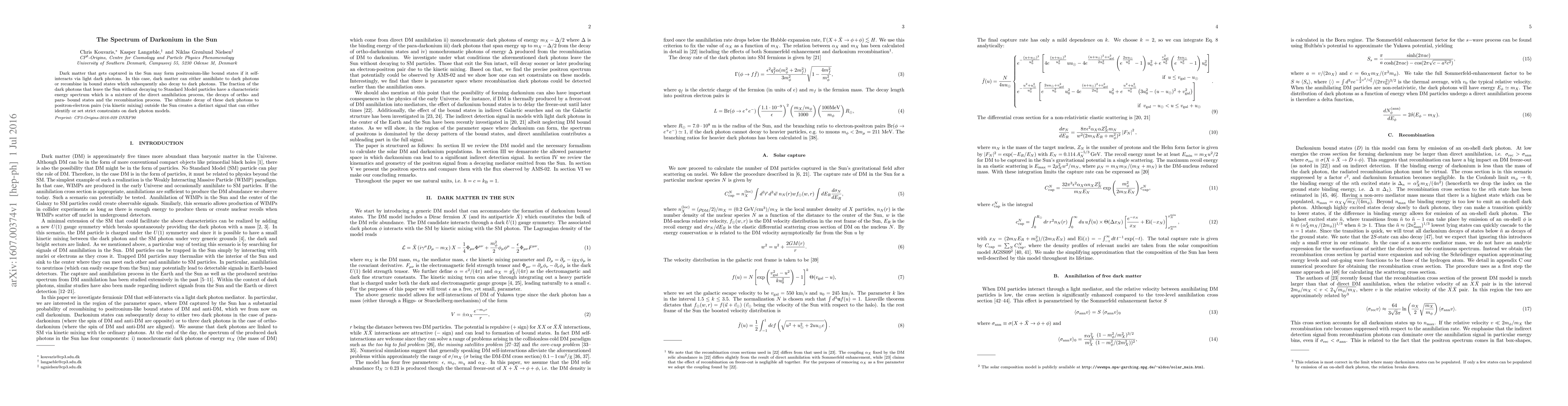 Researchers explore how dark matter captured in the Sun forms positronium-like states that can decay into dark photons, creating a unique signal for detection or constraint on dark photon models. The resulting energy spectrum offers a way to identify or limit these models.