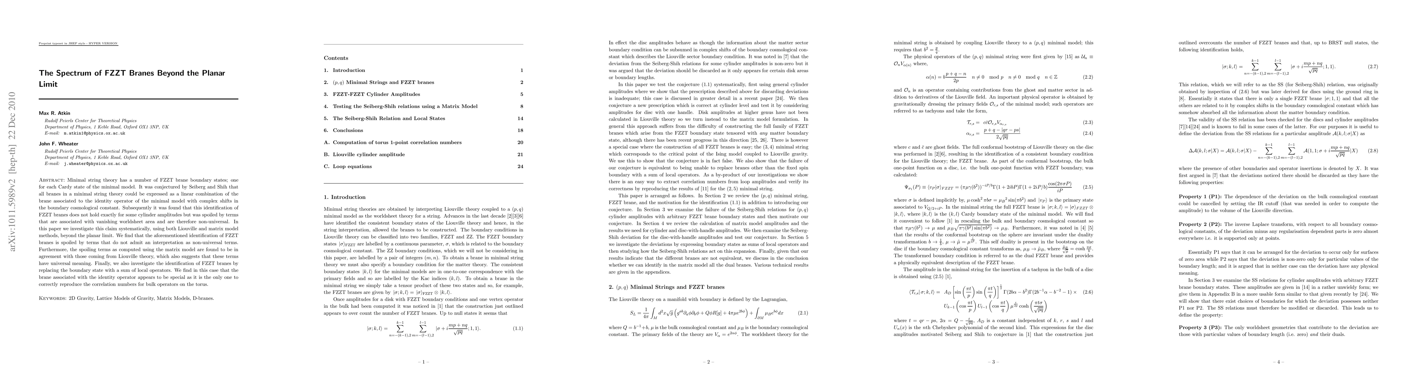 This paper explores the identification of FZZT branes in minimal string theory beyond the planar limit, finding that the conjectured linear combination of branes is not exact due to universal terms. It concludes that the brane associated with the identity operator uniquely reproduces correlation numbers for bulk operators.