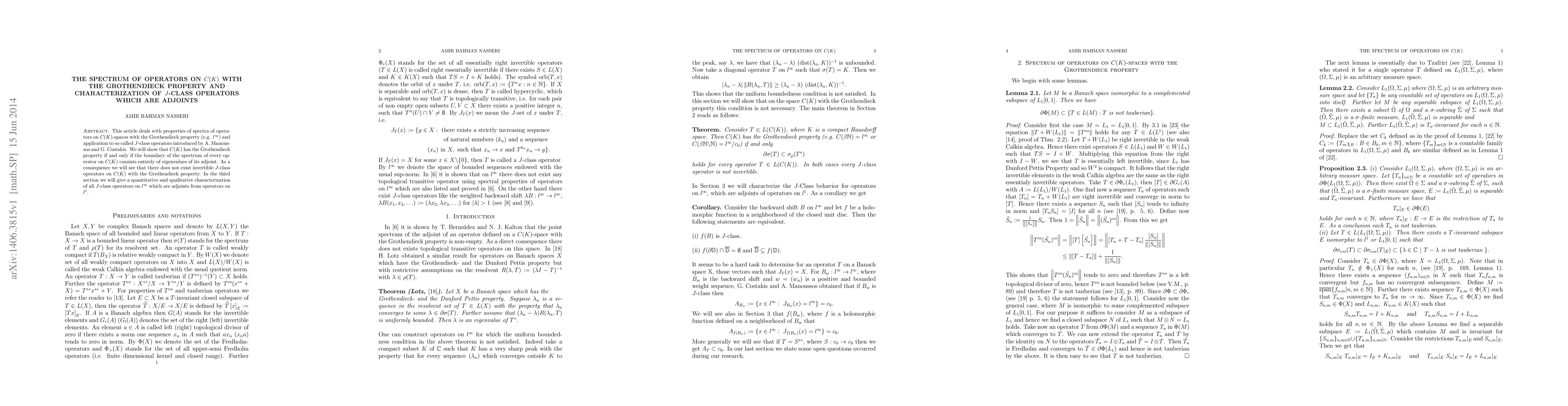 This article deals with properties of spectra of operators on C(K)-spaces with the Grothendieck property (e.g. l^{\infty}) and application to so called J-class operators introduced by A. Manoussos and G. Costakis. We will show that C(K) has the Grothendieck property if and only if the boundary of the spectrum of every operator on C(K) consists entirely of eigenvalues of its adjoint. As a consequence we will see that there does not exist invertible J-class operators on C(K) with the Grothendieck property. In the third section we will give a quantitative and qualitative characterization of all J-class operators on l^{\infty} which are adjoints from operators on l^1.