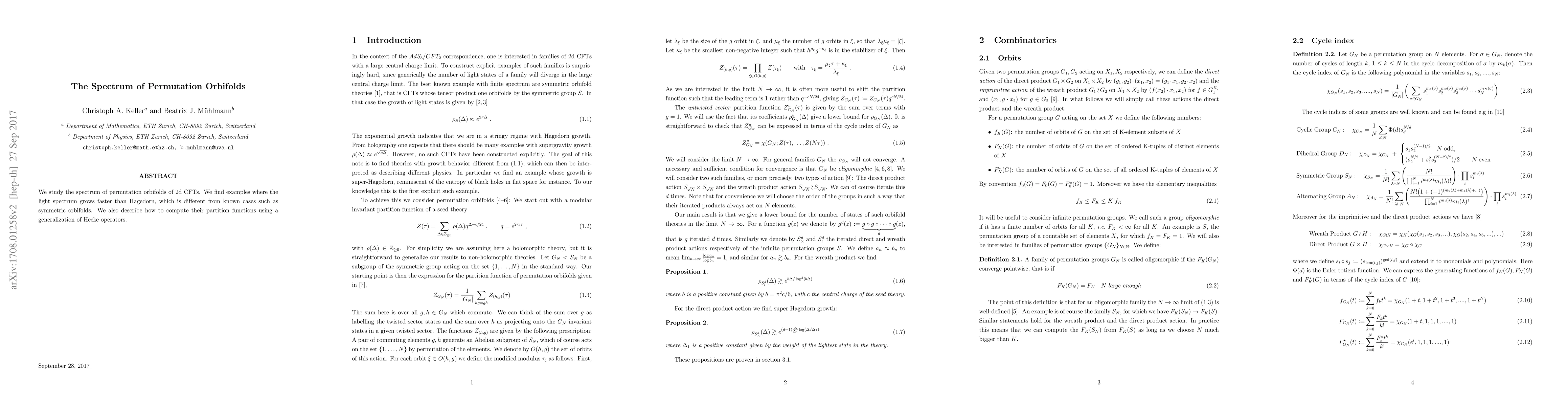 Summary: This paper investigates the spectrum of permutation orbifolds in 2d conformal field theories (CFTs), revealing faster-than-Hagedorn growth in the light spectrum for some examples, and presents a method for computing their partition functions via a generalized Hecke operator approach.