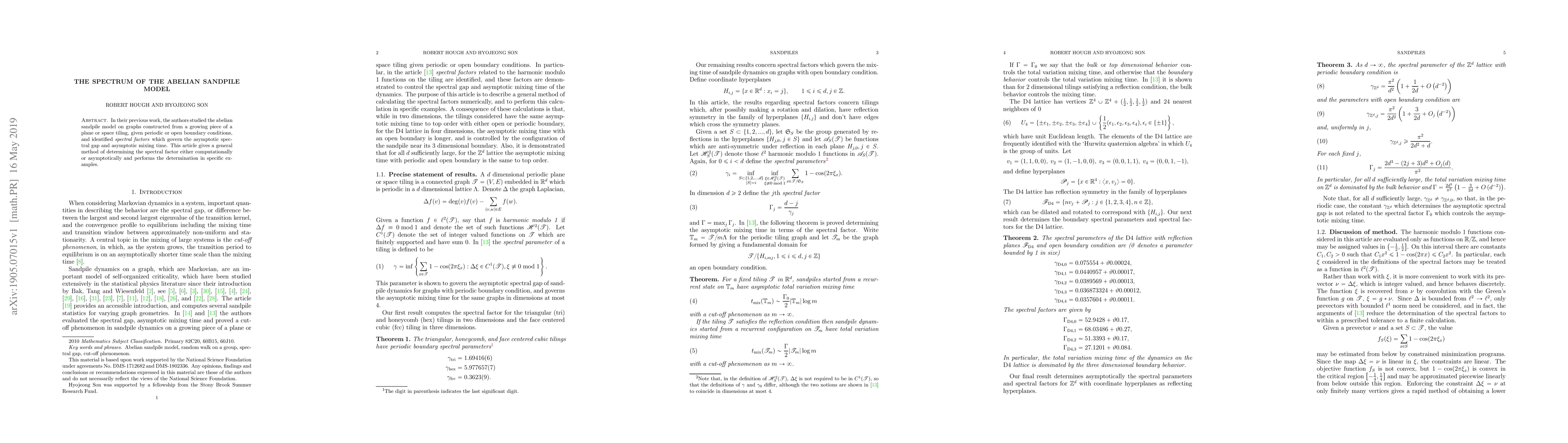 In their previous work, the authors studied the abelian sandpile model on graphs constructed from a growing piece of a plane or space tiling, given periodic or open boundary conditions, and identified spectral factors which govern the asymptotic spectral gap and asymptotic mixing time. This article gives a general method of determining the spectral factor either computationally or asymptotically and performs the determination in specific examples.