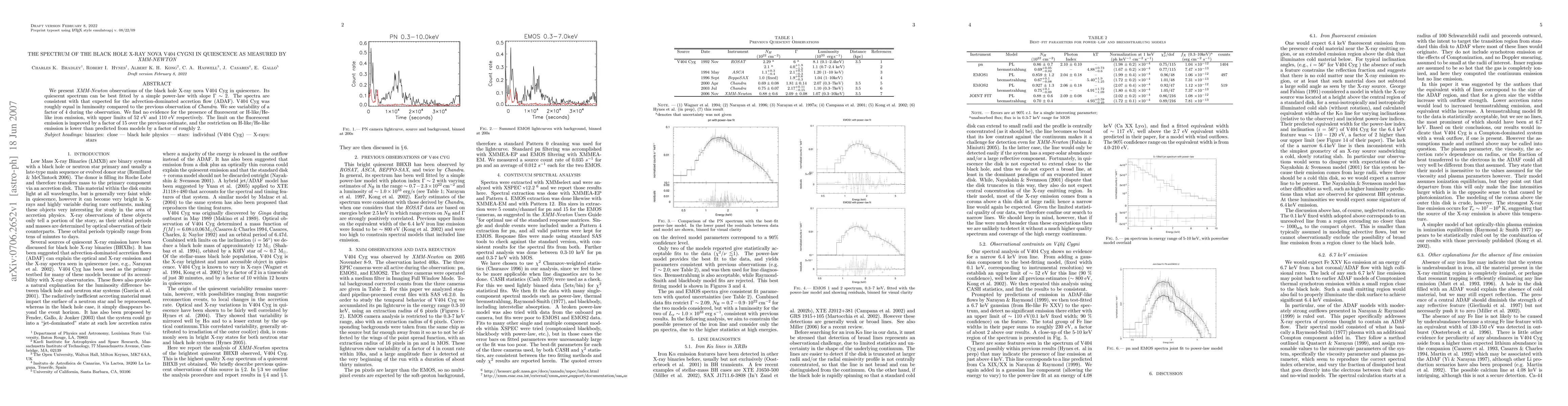 This study uses XMM-Newton data to analyze the quiescent spectrum of the black hole X-ray nova V404 Cygni, finding it best fits a power-law with a slope of 2, indicative of an advection-dominated accretion flow. No fluorescent or H-like/He-like iron emission was detected, improving previous limits significantly.