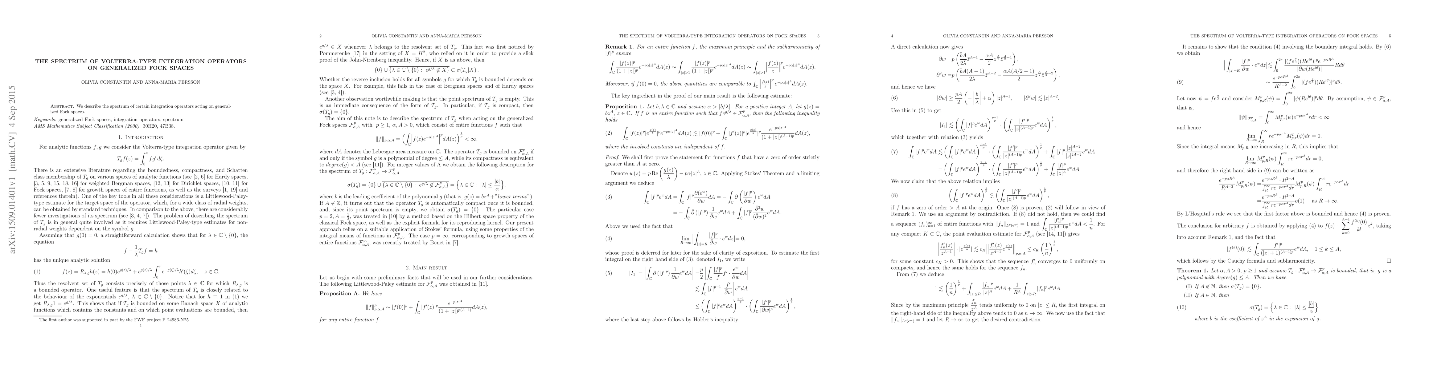 We describe the spectrum of certain integration operators acting on general- ized Fock spaces.