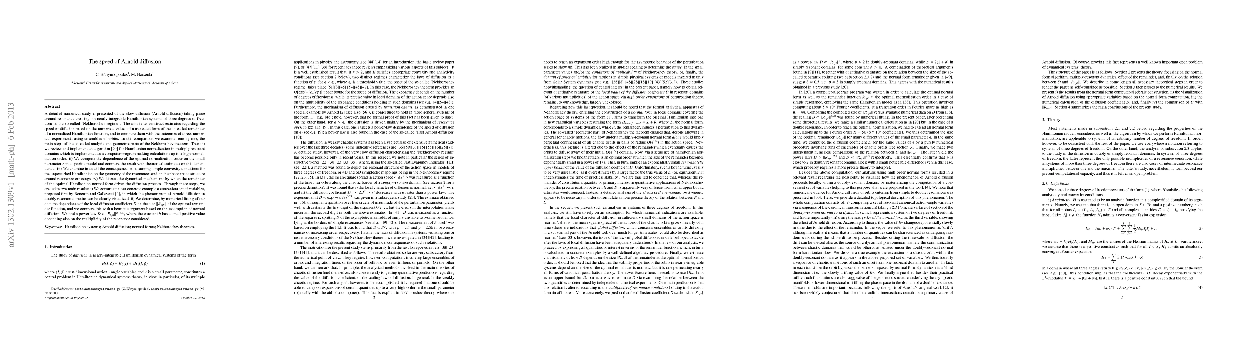 This paper investigates Arnold diffusion in nearly integrable Hamiltonian systems, focusing on the Nekhoroshev regime. It constructs estimates for diffusion speed based on numerical values of a normalized Hamiltonian function and compares these with direct numerical experiments. The study reveals a power law relationship between the local diffusion coefficient and the size of the optimal remainder function, confirming a small positive exponent dependent on resonance multiplicity.