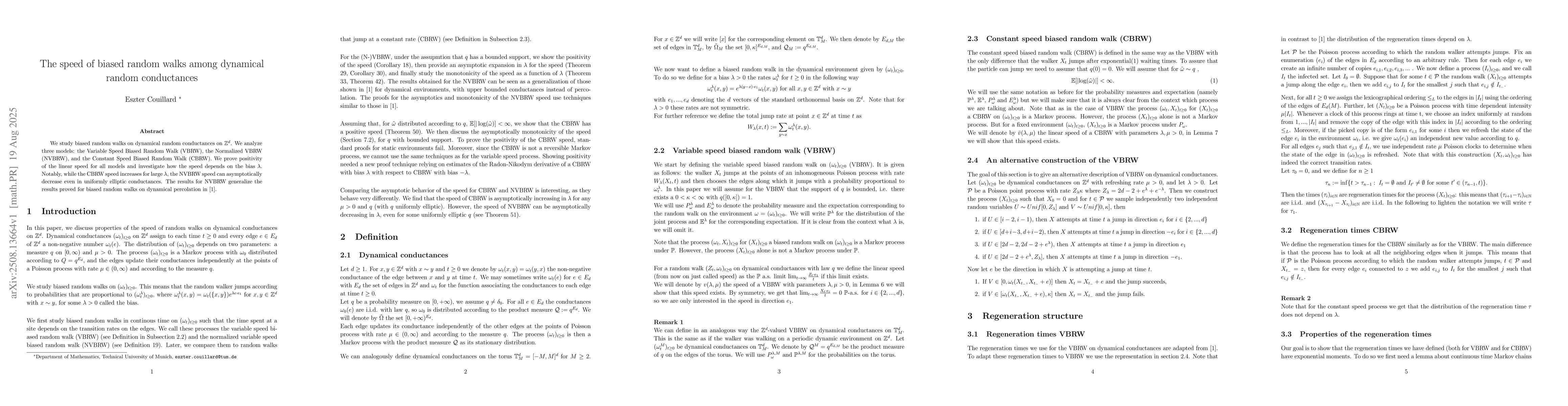 We study biased random walks on dynamical random conductances on $\mathbb{Z}^d$. We analyze three models: the Variable Speed Biased Random Walk (VBRW), the Normalized VBRW (NVBRW), and the Constant Speed Biased Random Walk (CBRW). We prove positivity of the linear speed for all models and investigate how the speed depends on the bias $\lambda$. Notably, while the CBRW speed increases for large $\lambda$, the NVBRW speed can asymptotically decrease even in uniformly elliptic conductances. The results for NVBRW generalize the results proved for biased random walks on dynamical percolation in [1].