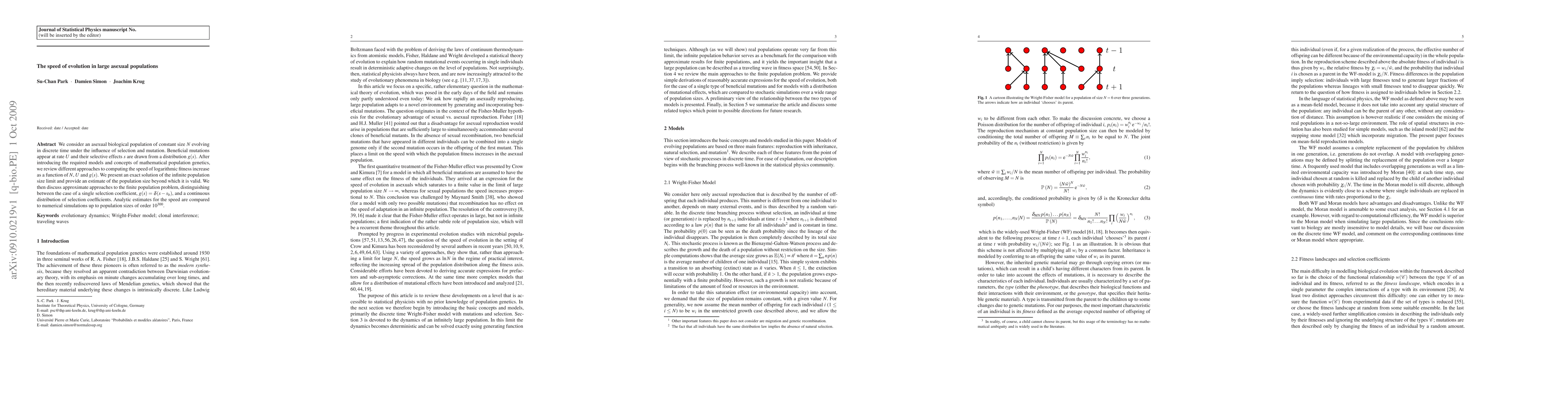 We consider an asexual biological population of constant size $N$ evolving in discrete time under the influence of selection and mutation. Beneficial mutations appear at rate $U$ and their selective effects $s$ are drawn from a distribution $g(s)$. After introducing the required models and concepts of mathematical population genetics, we review different approaches to computing the speed of logarithmic fitness increase as a function of $N$, $U$ and $g(s)$. We present an exact solution of the infinite population size limit and provide an estimate of the population size beyond which it is valid. We then discuss approximate approaches to the finite population problem, distinguishing between the case of a single selection coefficient, $g(s) = \delta(s - s_b)$, and a continuous distribution of selection coefficients. Analytic estimates for the speed are compared to numerical simulations up to population sizes of order $10^{300}$.