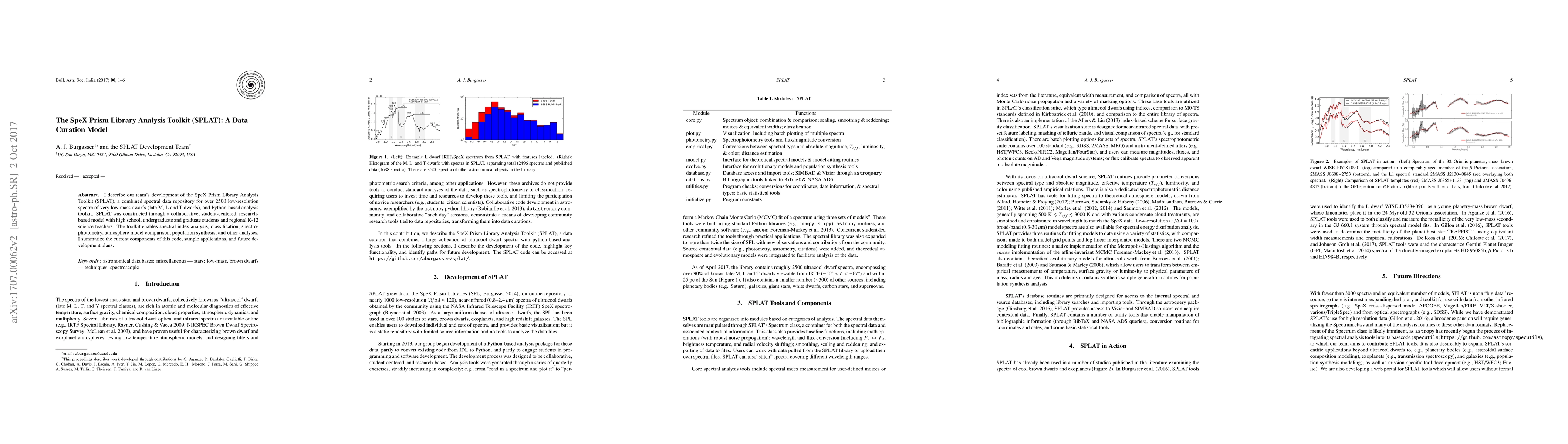 The SpeX Prism Library Analysis Toolkit (SPLAT) is a collaborative, student-centered data curation model for spectral data of low-mass dwarfs, featuring a Python-based analysis toolkit for various astrophysical analyses. Future development plans include expanding its capabilities and applications.