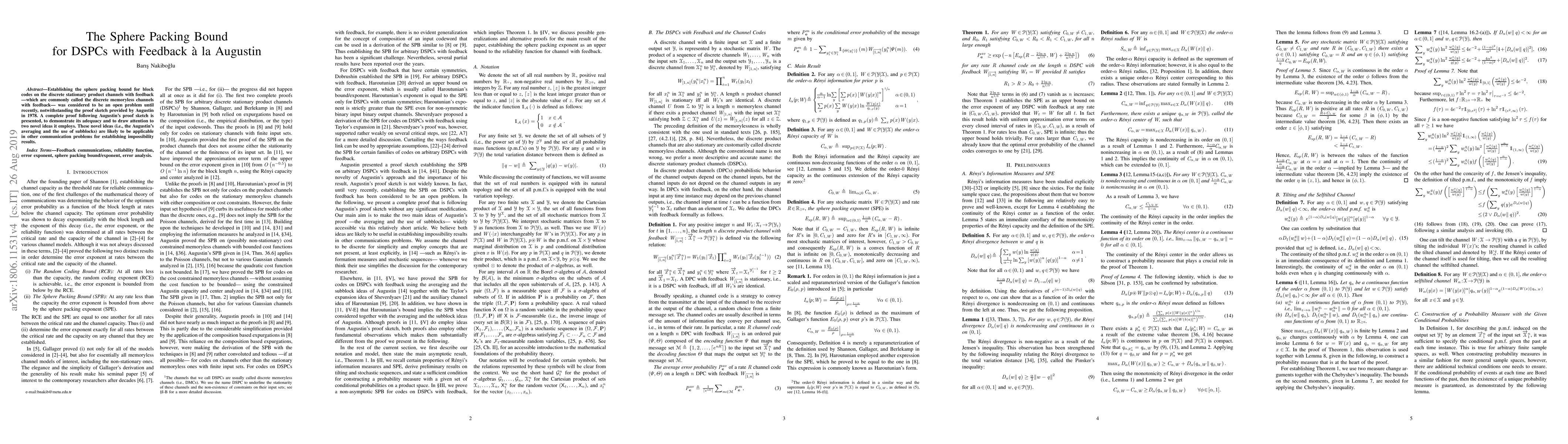 Establishing the sphere packing bound for block codes on the discrete stationary product channels with feedback ---which are commonly called the discrete memoryless channels with feedback--- was considered to be an open problem until recently, notwithstanding the proof sketch provided by Augustin in 1978. A complete proof following Augustin's proof sketch is presented, to demonstrate its adequacy and to draw attention to two novel ideas it employs. These novel ideas (i.e., the Augustin's averaging and the use of subblocks) are likely to be applicable in other communication problems for establishing impossibility results.