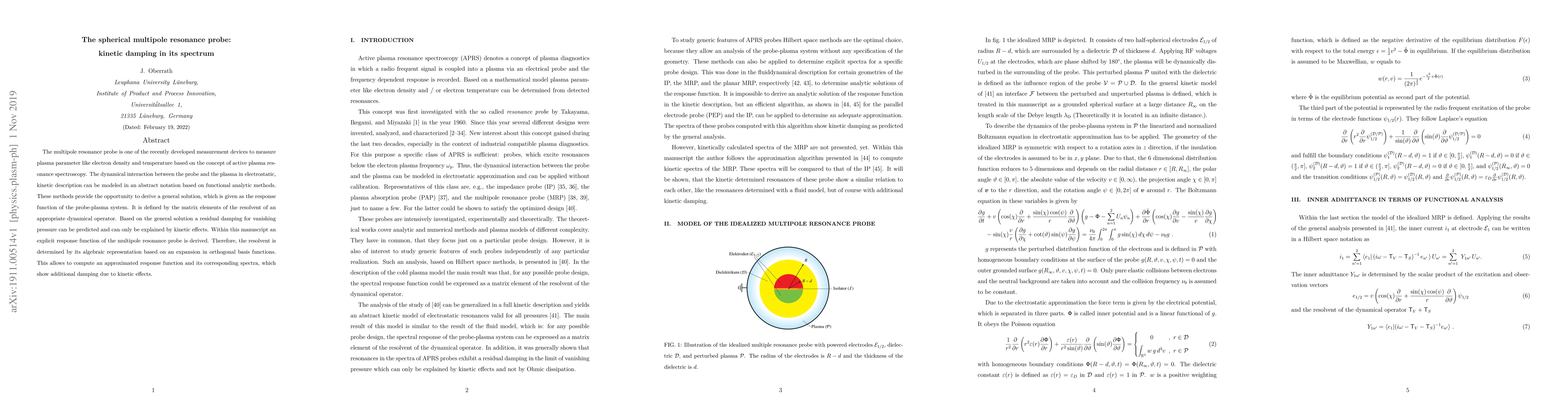The multipole resonance probe is one of the recently developed measurement devices to measure plasma parameter like electron density and temperature based on the concept of active plasma resonance spectroscopy. The dynamical interaction between the probe and the plasma in electrostatic, kinetic description can be modeled in an abstract notation based on functional analytic methods. These methods provide the opportunity to derive a general solution, which is given as the response function of the probe-plasma system. It is defined by the matrix elements of the resolvent of an appropriate dynamical operator. Based on the general solution a residual damping for vanishing pressure can be predicted and can only be explained by kinetic effects. Within this manuscript an explicit response function of the multipole resonance probe is derived. Therefore, the resolvent is determined by its algebraic representation based on an expansion in orthogonal basis functions. This allows to compute an approximated response function and its corresponding spectra, which show additional damping due to kinetic effects.