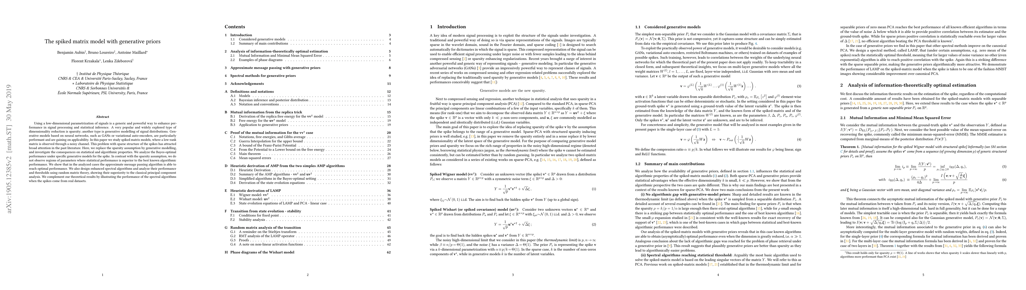 This paper investigates the performance of spiked matrix models with generative priors, finding that enhanced spectral algorithms outperform classical methods in certain cases.