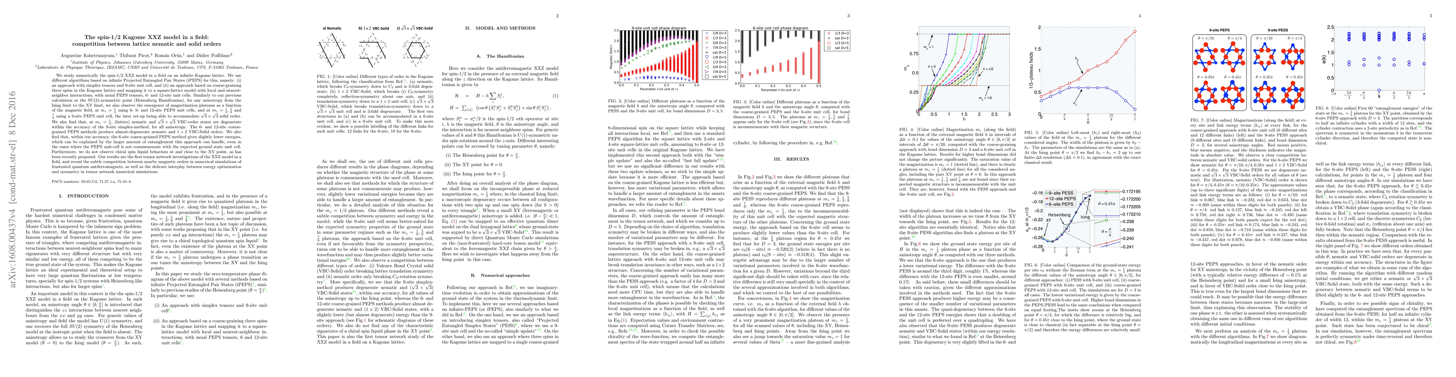 This paper numerically investigates the spin-1/2 XXZ model on a Kagome lattice under a magnetic field using tensor network methods, revealing magnetization plateaus and the competition between lattice nematic and solid orders, with no chiral spin liquid behaviors observed.