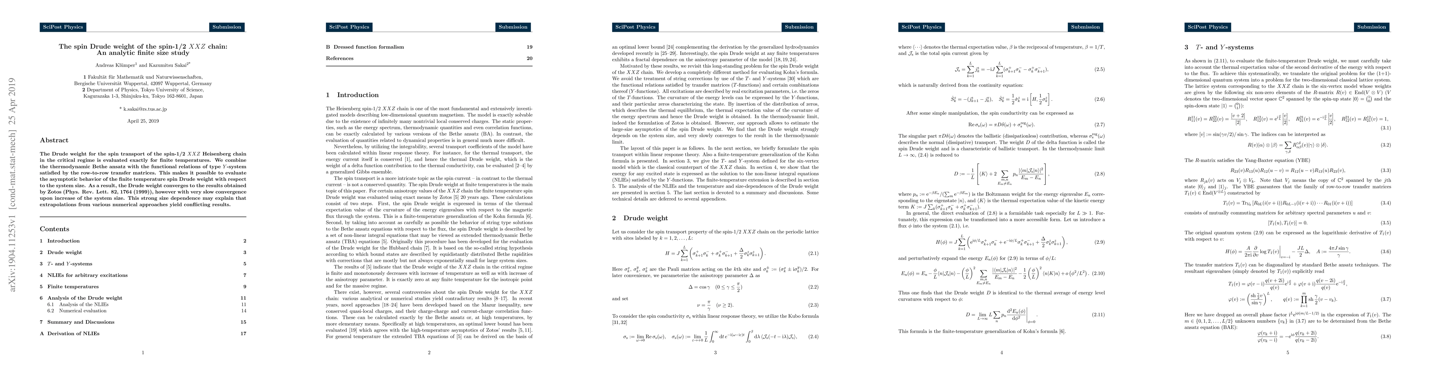 This paper analytically evaluates the Drude weight for spin transport in the spin-1/2 $XXZ$ Heisenberg chain at finite temperatures, using the thermodynamic Bethe ansatz and $Y$-system functional relations. The study reveals slow convergence of the Drude weight with system size, which may explain discrepancies in numerical extrapolations.