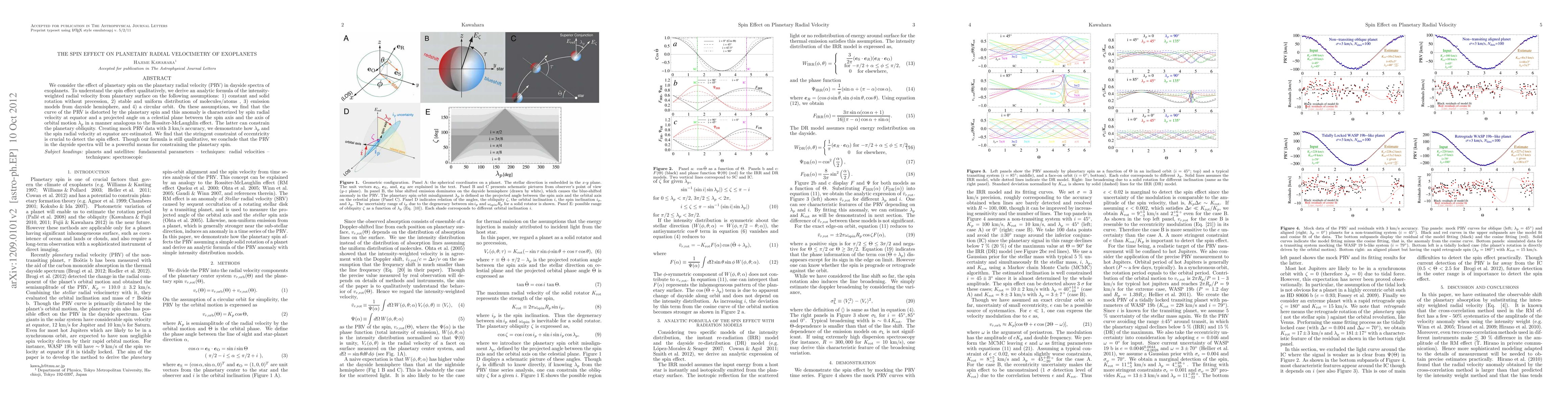 This research paper derives an analytic formula to understand how planetary spin affects radial velocity (PRV) in exoplanet dayside spectra, under assumptions of constant rotation, uniform molecular distribution, and circular orbits. The study finds that planetary spin distorts PRV curves, introducing a spin radial velocity at the equator and an angle lambda_p, analogous to the Rossiter-McLaughlin effect. Mock PRV data simulations suggest that stringent eccentricity constraints are crucial for detecting the spin effect, positioning PRV in dayside spectra as a valuable tool for constraining planetary spin.