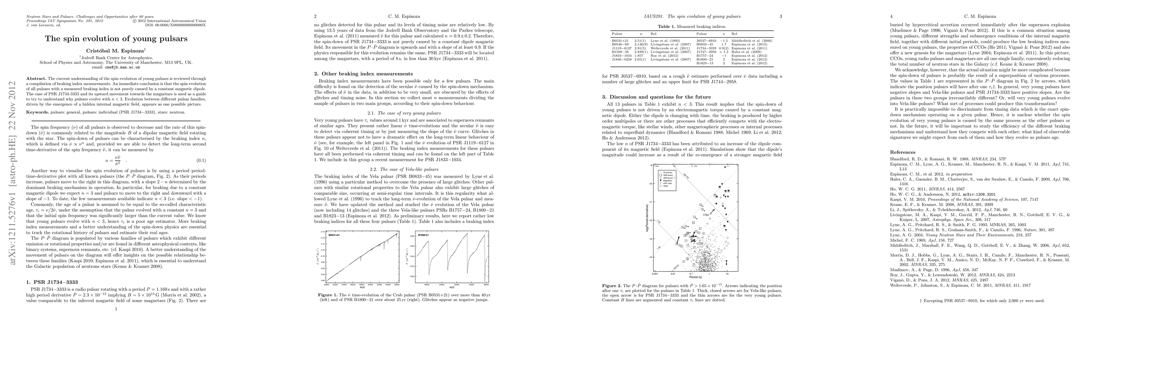 This paper reviews the spin evolution of young pulsars using braking index measurements and concludes that their spin evolution is not solely due to a constant magnetic dipole. It suggests that the emergence of a hidden internal magnetic field may drive the evolution between different pulsar families, exemplified by PSR J1734-3333.