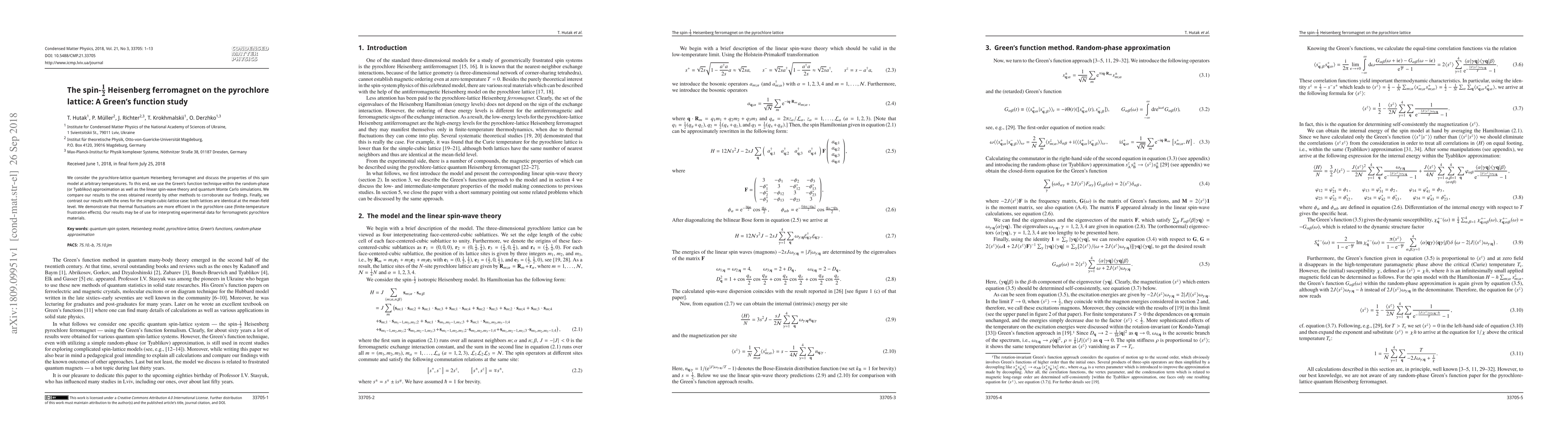 This paper investigates the spin-$\frac{1}{2}$ Heisenberg ferromagnet on the pyrochlore lattice using Green's function techniques, comparing thermal fluctuation effects to those on a simple-cubic lattice. The study finds that pyrochlore lattice experiences stronger finite-temperature frustration, potentially aiding in the interpretation of experimental data for ferromagnetic pyrochlore materials.