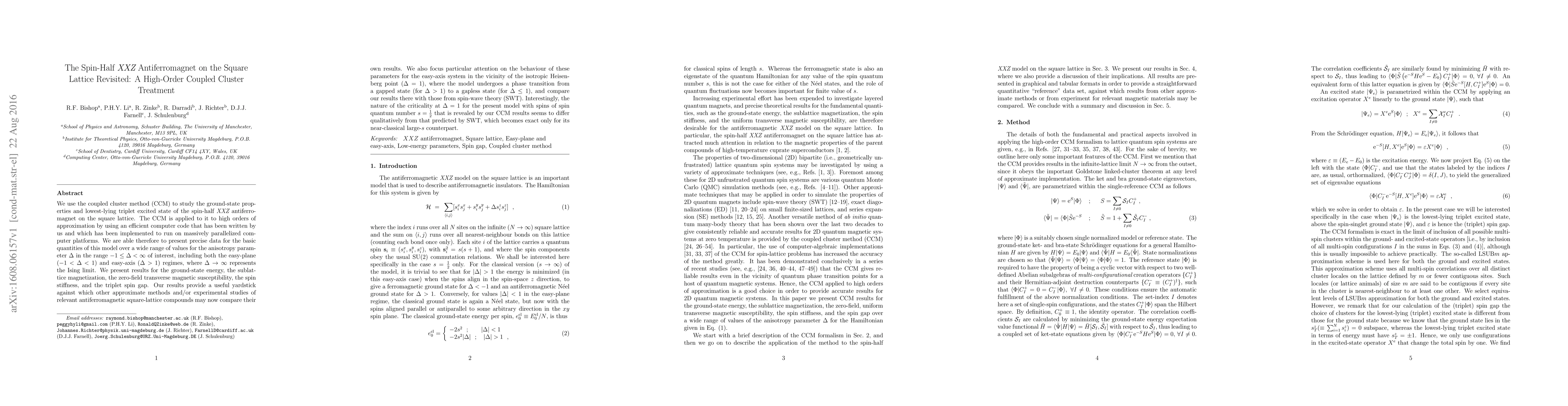 We use the coupled cluster method (CCM) to study the ground-state properties and lowest-lying triplet excited state of the spin-half {\it XXZ} antiferromagnet on the square lattice. The CCM is applied to it to high orders of approximation by using an efficient computer code that has been written by us and which has been implemented to run on massively parallelized computer platforms. We are able therefore to present precise data for the basic quantities of this model over a wide range of values for the anisotropy parameter $\Delta$ in the range $-1 \leq \Delta < \infty$ of interest, including both the easy-plane $(-1 < \Delta < 1)$ and easy-axis $(\Delta > 1)$ regimes, where $\Delta \rightarrow \infty$ represents the Ising limit. We present results for the ground-state energy, the sublattice magnetization, the zero-field transverse magnetic susceptibility, the spin stiffness, and the triplet spin gap. Our results provide a useful yardstick against which other approximate methods and/or experimental studies of relevant antiferromagnetic square-lattice compounds may now compare their own results. We also focus particular attention on the behaviour of these parameters for the easy-axis system in the vicinity of the isotropic Heisenberg point ($\Delta = 1$), where the model undergoes a phase transition from a gapped state (for $\Delta > 1$) to a gapless state (for $\Delta \leq 1$), and compare our results there with those from spin-wave theory (SWT). Interestingly, the nature of the criticality at $\Delta=1$ for the present model with spins of spin quantum number $s=\frac{1}{2}$ that is revealed by our CCM results seems to differ qualitatively from that predicted by SWT, which becomes exact only for its near-classical large-$s$ counterpart.