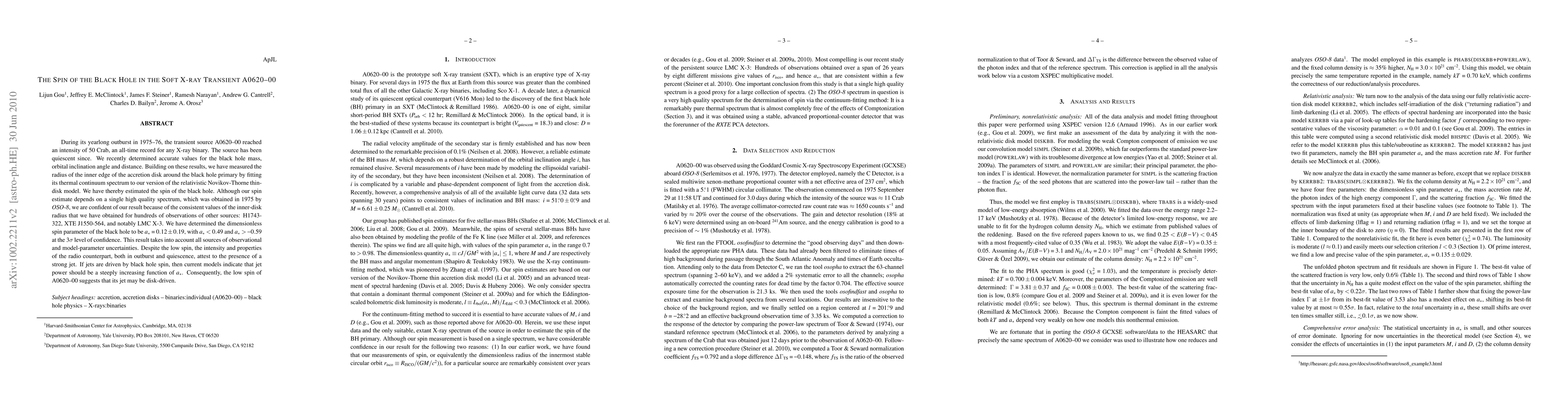 Researchers determined the spin of the black hole in A0620-00, a soft X-ray transient, to be 0.12+-0.19, suggesting its jet may be disk-driven despite low spin.