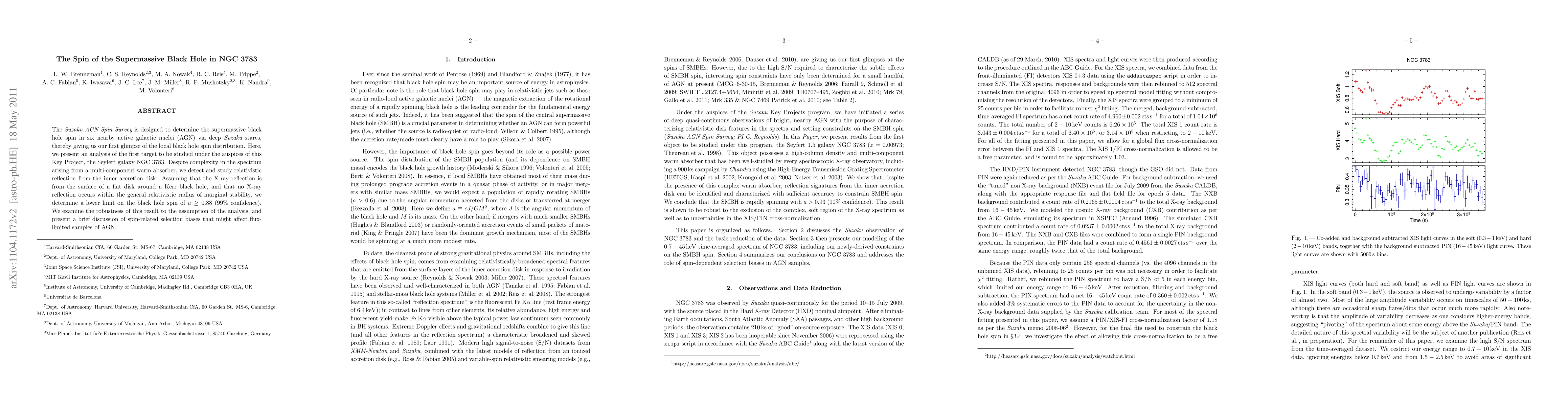 The Suzaku AGN Spin Survey is designed to determine the supermassive black hole spin in six nearby active galactic nuclei (AGN) via deep Suzaku stares, thereby giving us our first glimpse of the local black hole spin distribution. Here, we present an analysis of the first target to be studied under the auspices of this Key Project, the Seyfert galaxy NGC 3783. Despite complexity in the spectrum arising from a multi-component warm absorber, we detect and study relativistic reflection from the inner accretion disk. Assuming that the X-ray reflection is from the surface of a flat disk around a Kerr black hole, and that no X-ray reflection occurs within the general relativistic radius of marginal stability, we determine a lower limit on the black hole spin of a > 0.88 (99% confidence). We examine the robustness of this result to the assumption of the analysis, and present a brief discussion of spin-related selection biases that might affect flux-limited samples of AGN.
