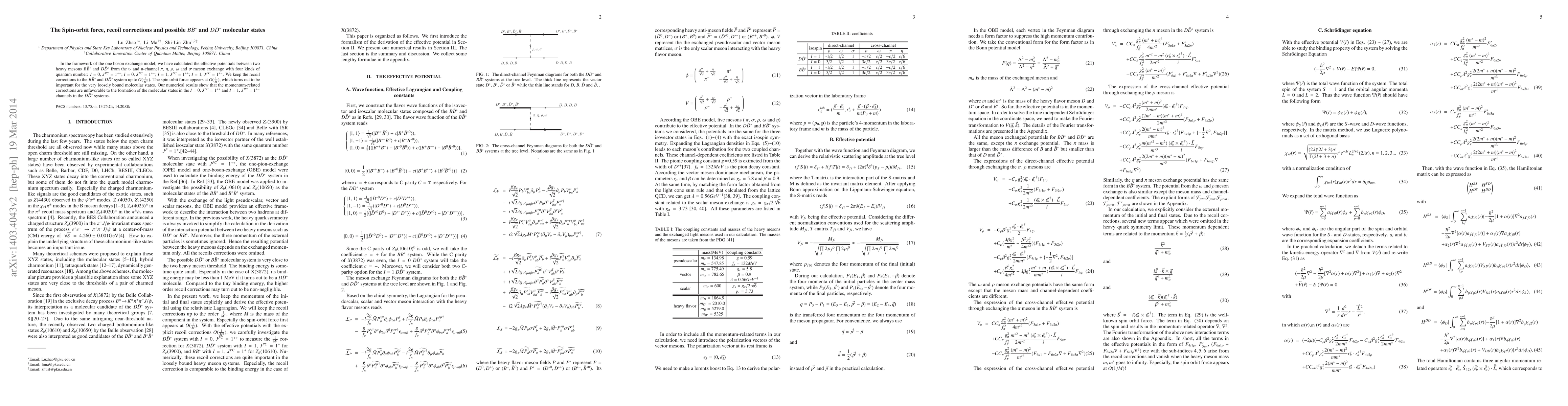 This paper investigates the effective potentials between heavy mesons $B \bar{B}^{*}$ and $D \bar{D}^{*}$ using the one boson exchange model, considering spin-orbit forces and recoil corrections. The study finds that momentum-related corrections hinder the formation of molecular states in certain $D \bar{D}^{*}$ channels.