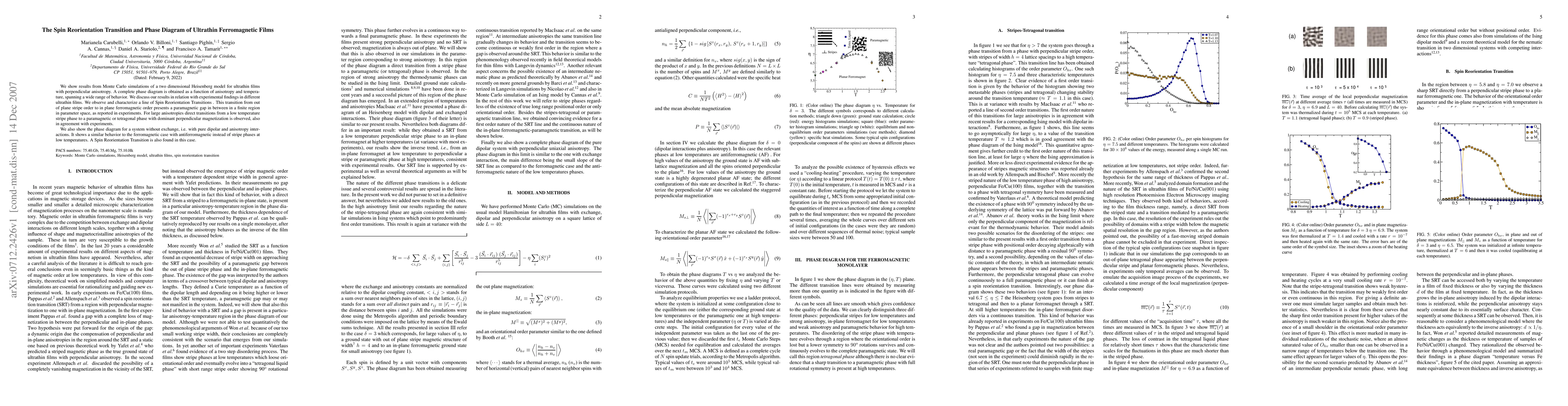 This paper presents Monte Carlo simulations of a two-dimensional Heisenberg model for ultrathin ferromagnetic films, revealing a complete phase diagram with a Spin Reorientation Transition from out-of-plane to in-plane order, in agreement with experimental observations. The study also explores a phase diagram for a system without exchange, showing similar transitions driven by dipolar and anisotropy interactions.