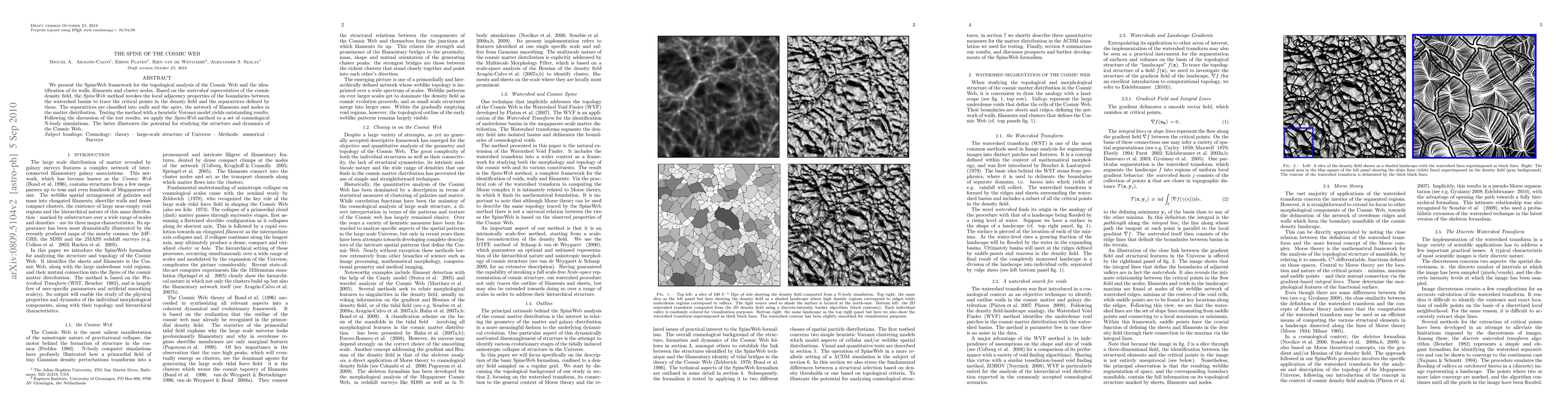 The SpineWeb framework analyzes the Cosmic Web's topological structure, identifying walls, filaments, and cluster nodes using watershed segmentation. Applied to N-body simulations, it reveals the potential for studying the Cosmic Web's structure and dynamics.