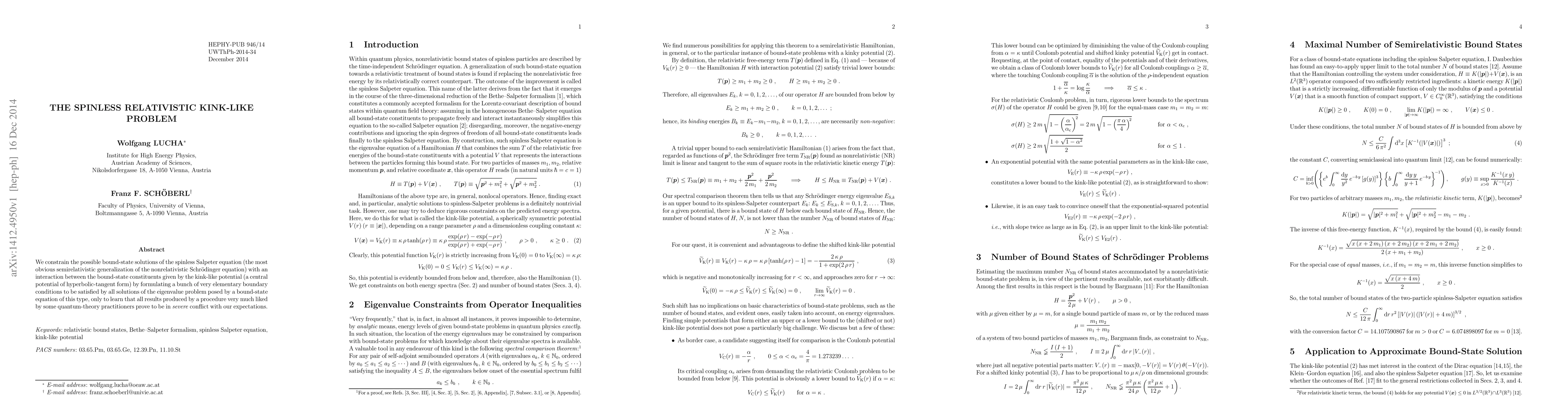 We constrain the possible bound-state solutions of the spinless Salpeter equation (the most obvious semirelativistic generalization of the nonrelativistic Schr\"odinger equation) with an interaction between the bound-state constituents given by the kink-like potential (a central potential of hyperbolic-tangent form) by formulating a bunch of very elementary boundary conditions to be satisfied by all solutions of the eigenvalue problem posed by a bound-state equation of this type, only to learn that all results produced by a procedure very much liked by some quantum-theory practitioners prove to be in severe conflict with our expectations.