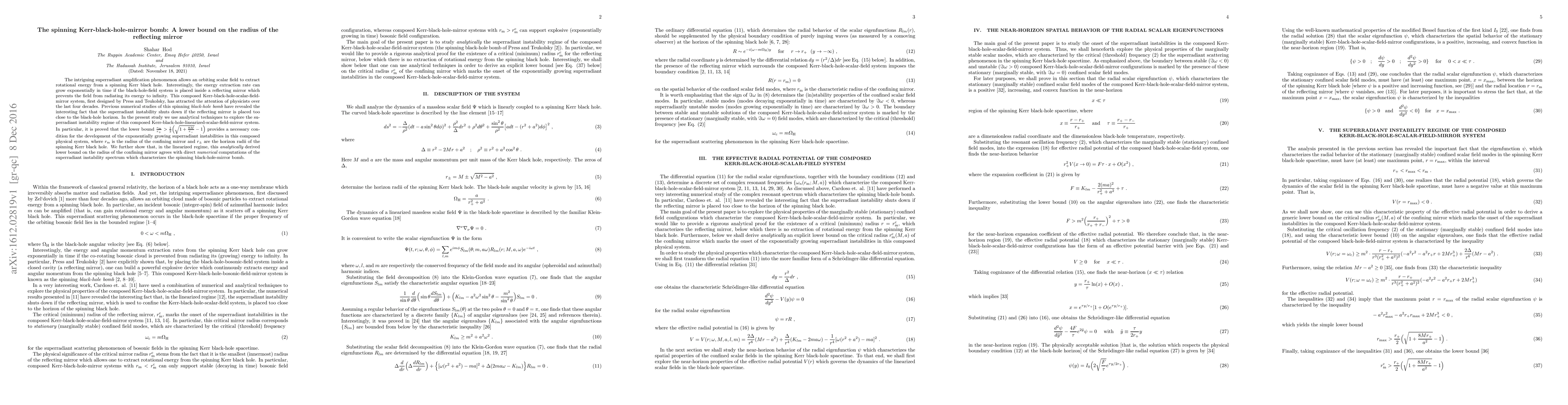 This paper analytically determines a lower bound on the radius of a reflecting mirror surrounding a spinning Kerr black hole to sustain superradiant instabilities, proving that the mirror must be placed beyond a specific threshold relative to the black hole's horizon radii. The derived analytical lower bound matches numerical computations, confirming the conditions necessary for the exponential growth of superradiant instabilities in the Kerr-black-hole-mirror system.
