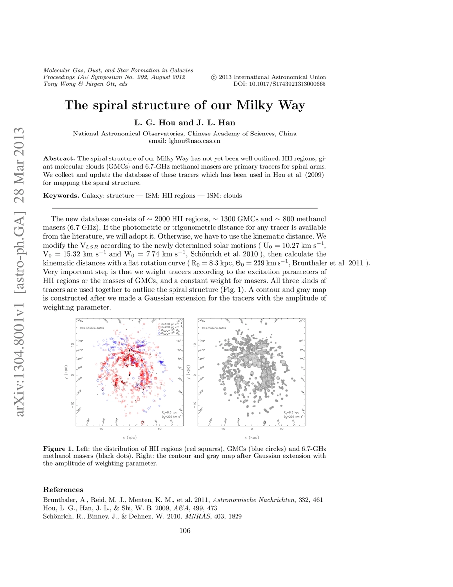 The spiral structure of our Milky Way has not yet been well outlined. HII regions, giant molecular clouds (GMCs) and 6.7-GHz methanol masers are primary tracers for spiral arms. We collect and update the database of these tracers which has been used in Hou, Han & Shi (2009) for mapping the spiral structure.