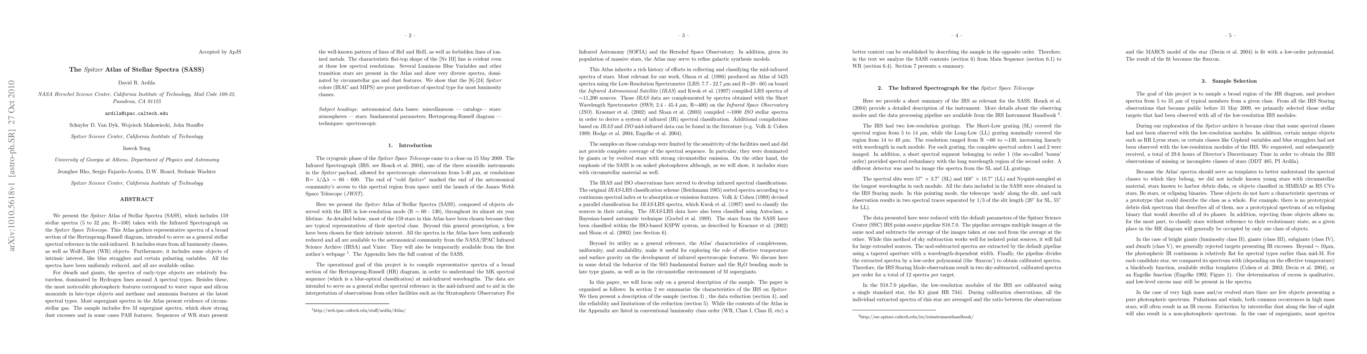 The Spitzer Atlas of Stellar Spectra offers a comprehensive collection of 159 mid-infrared stellar spectra, providing a reference for understanding the spectral types of stars across various luminosity classes.